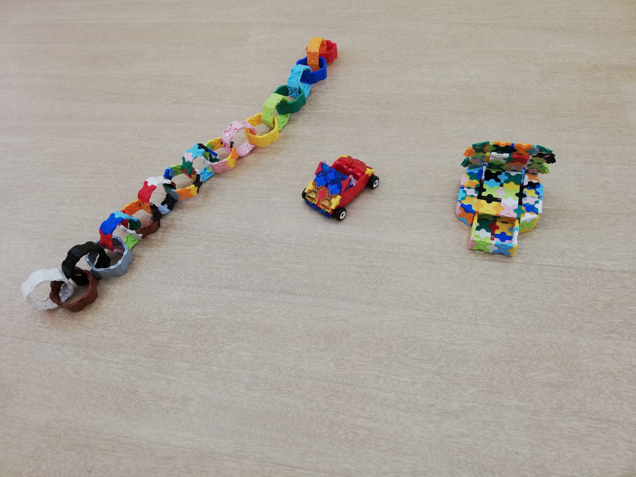 タイヤや今までに無い色のピースが新しく仲間に加わりました! 全部で2000ピース位になったので、みんなで色々な作品が作れます✨
