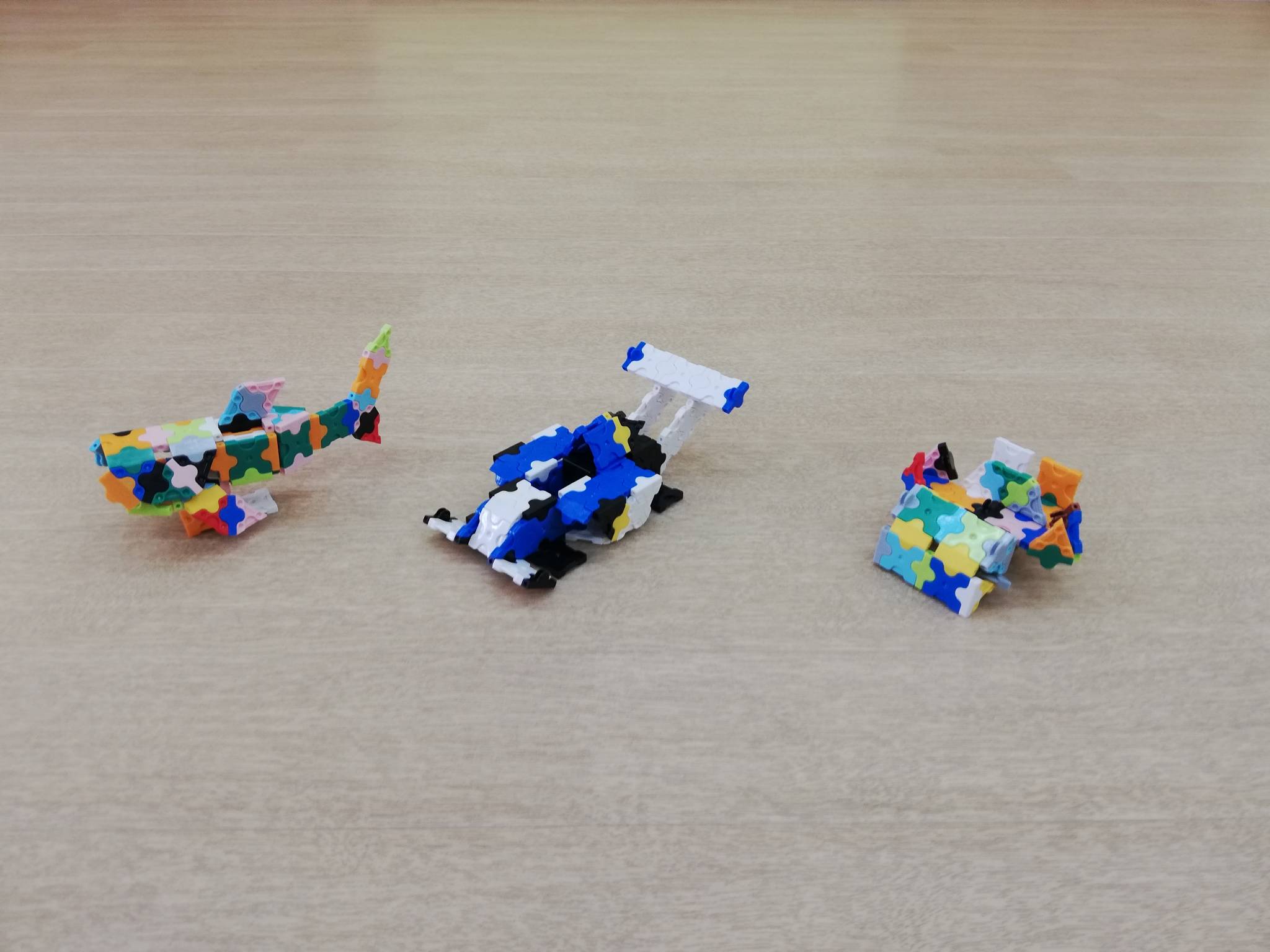 どれも、みんな一生懸命に集中して作った作品です! 説明書を見て作ったり、自分の感覚で作ったりしています!