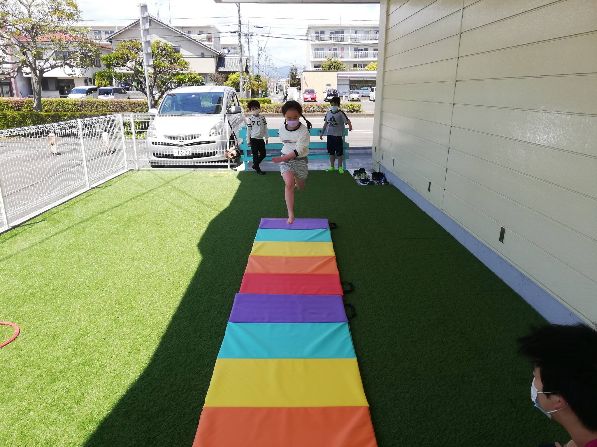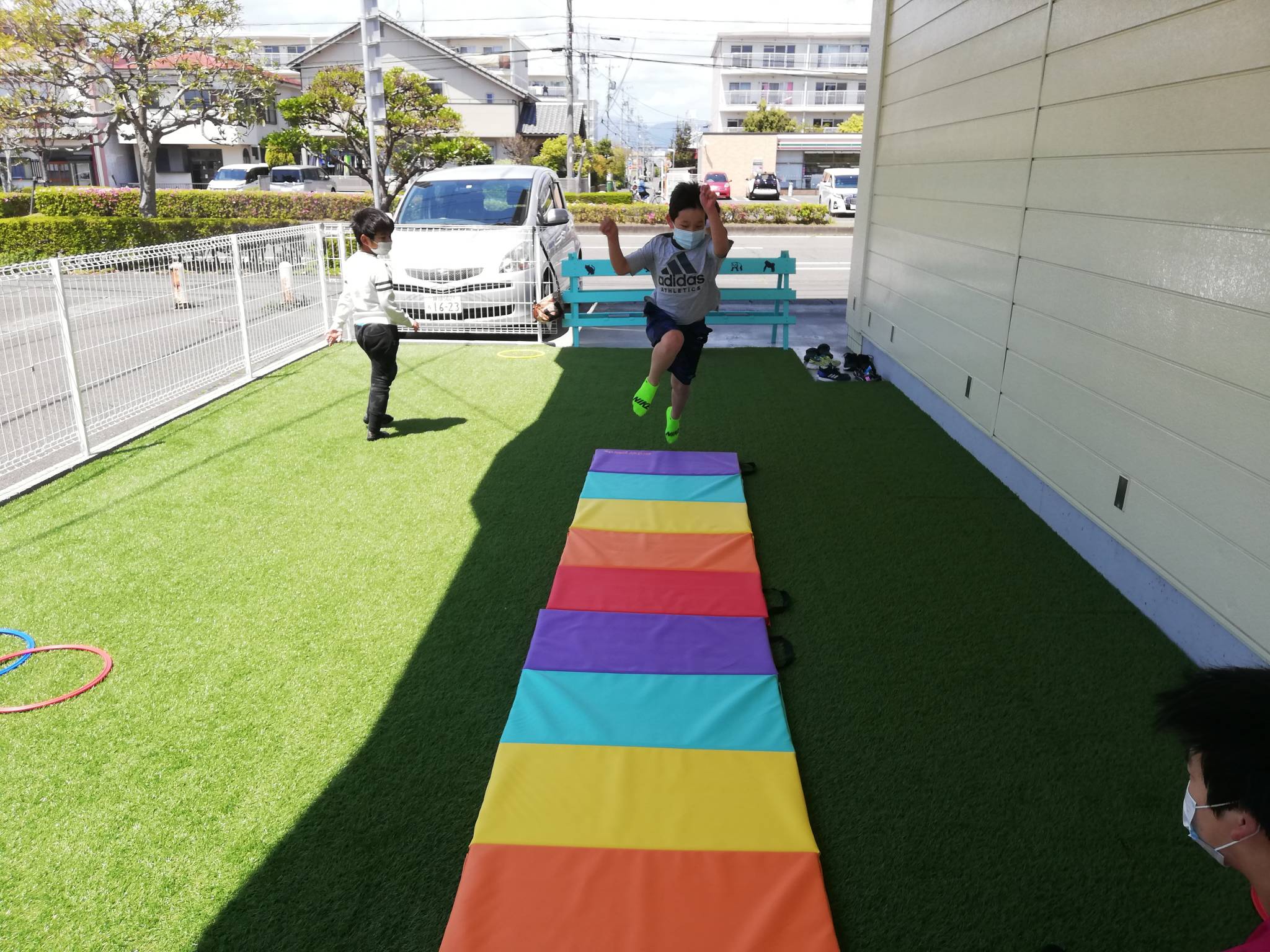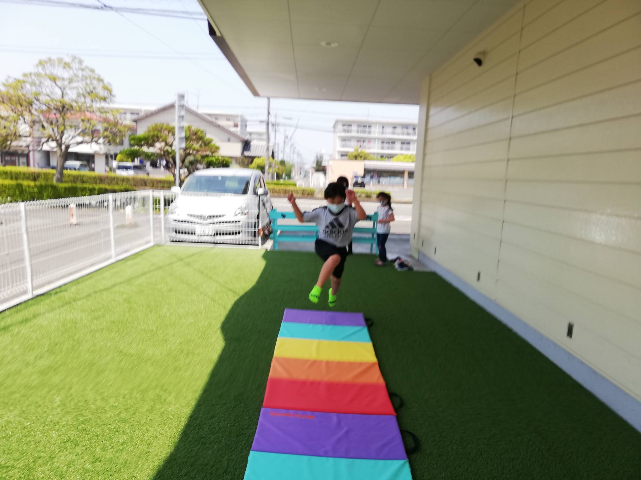🌈にじいろ では芝生エリアでの運動として「走り幅跳び」が流行っています!