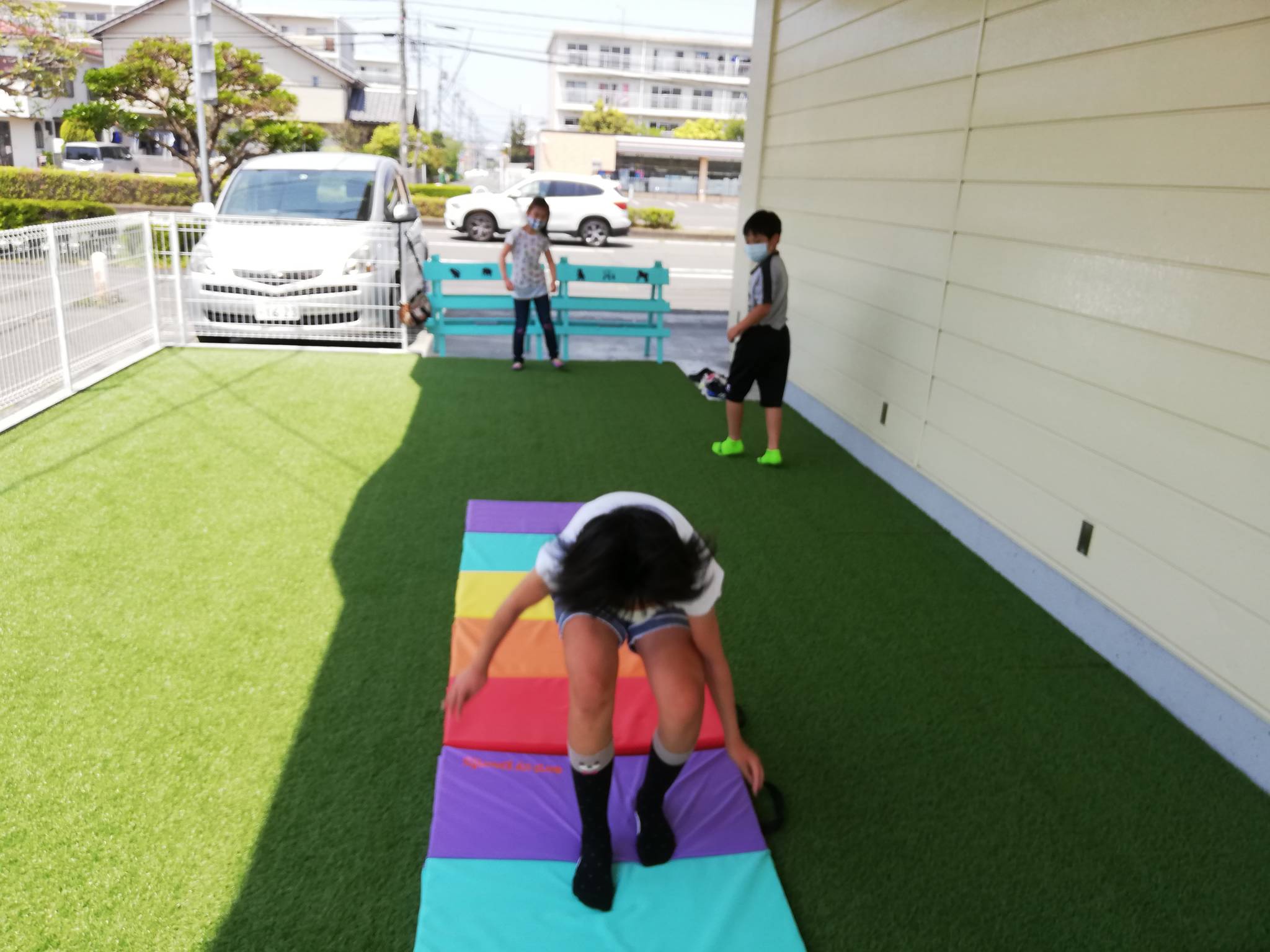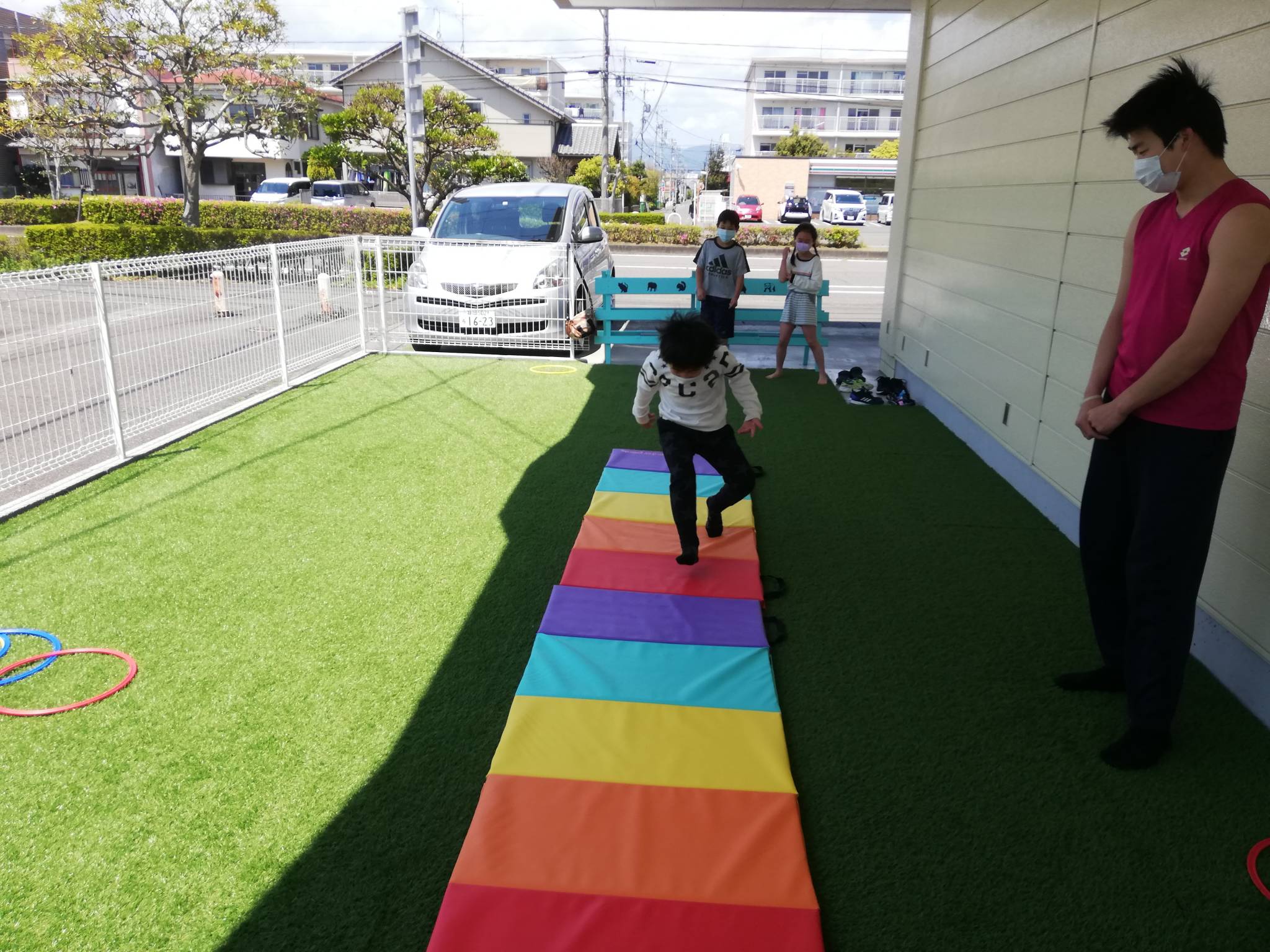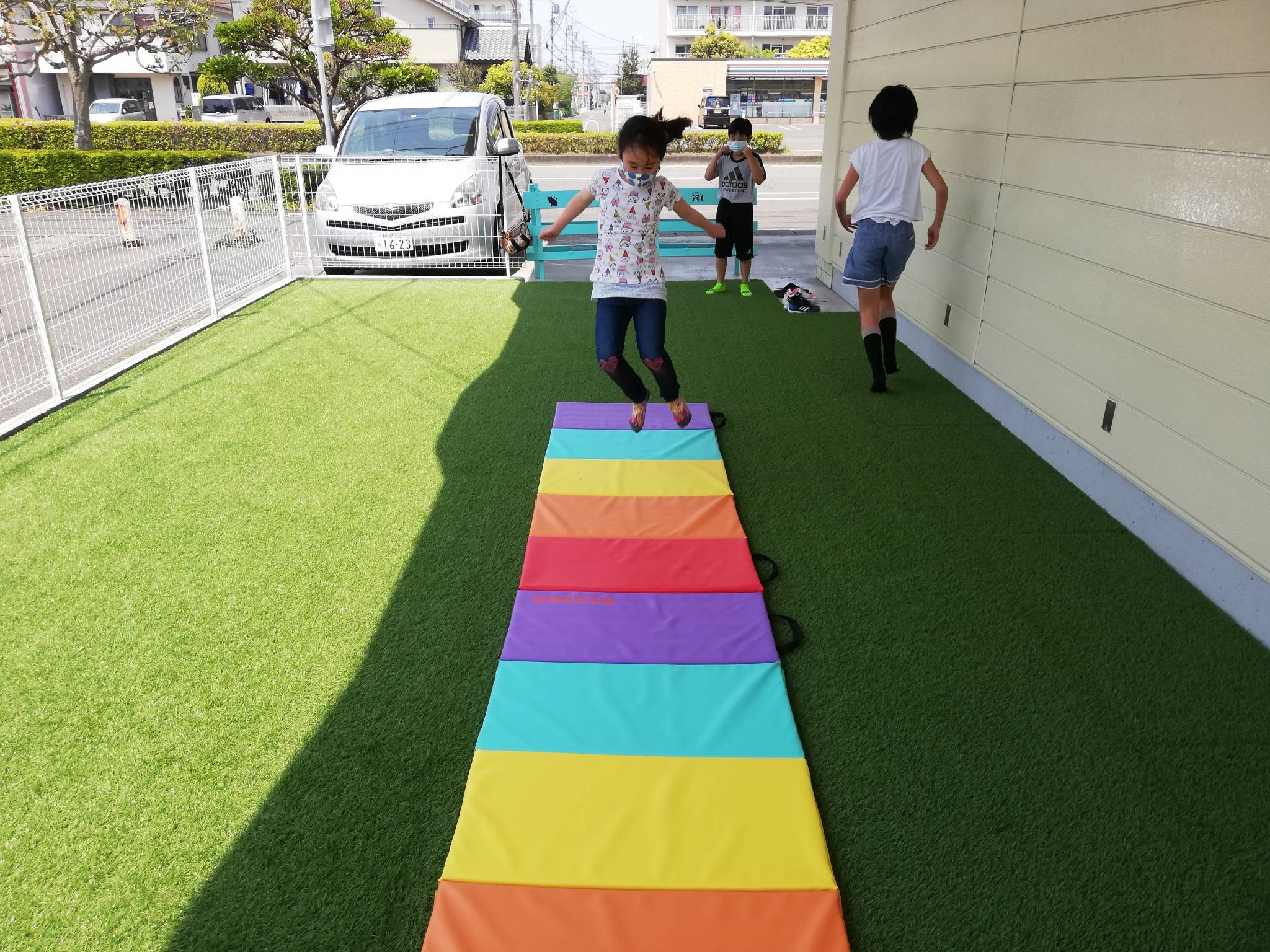 🌈にじいろ では芝生エリアでの運動として「走り幅跳び」が流行っています!