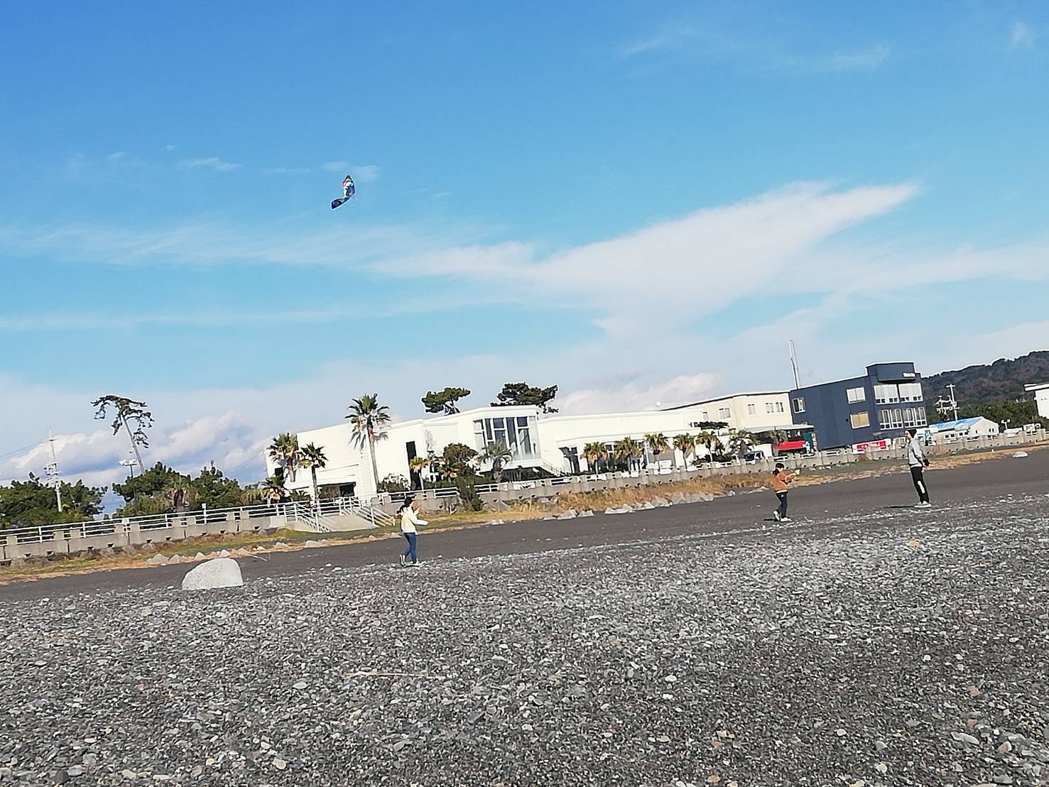 午後はお正月にちなんで浜辺にて凧上げをやりました! 結構、浜辺に行くとやっている家族👪が多いです😁✨