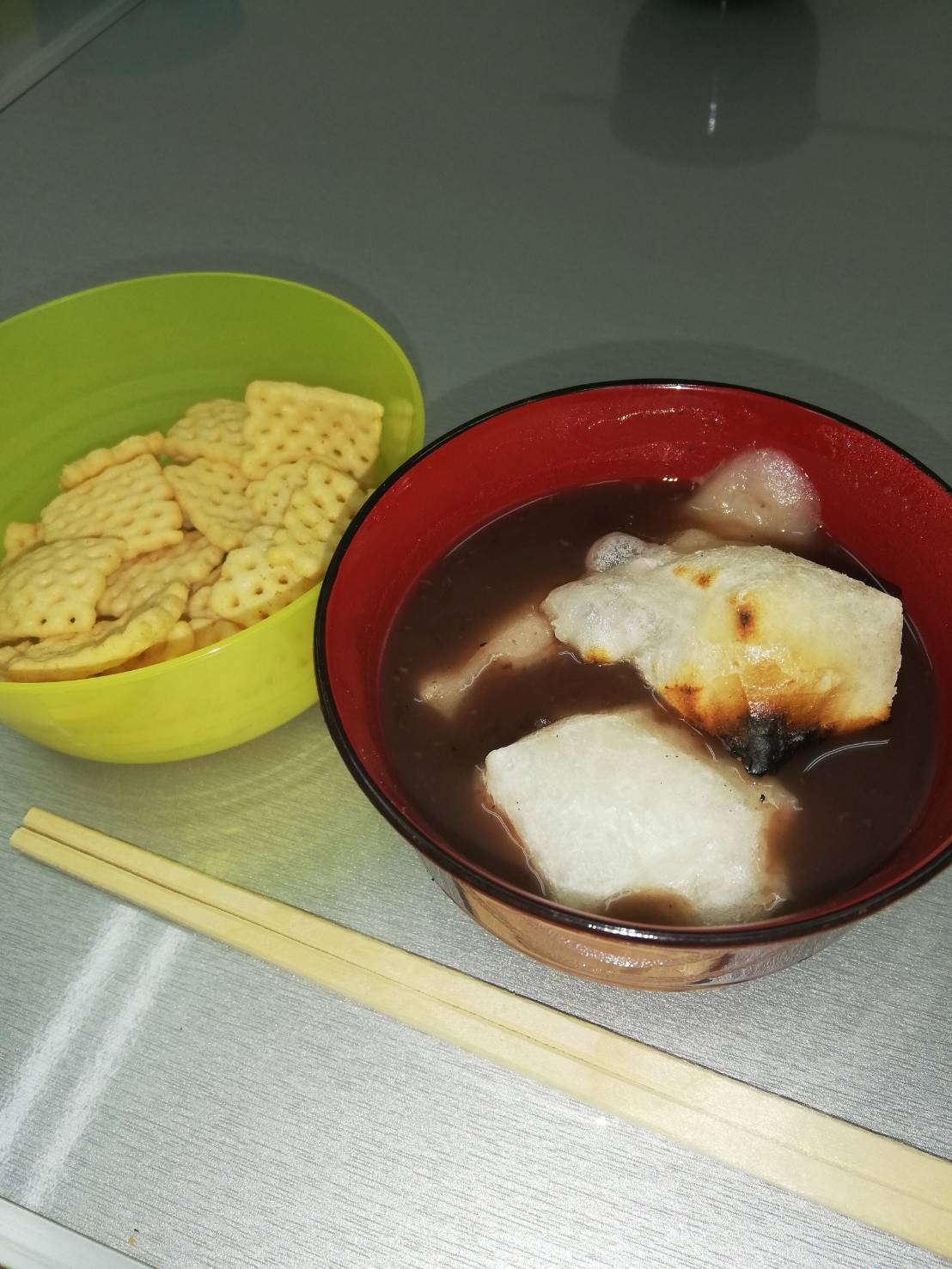 そして、おやつには、「おしるこ」を食べて正月🎍気分を味わいました😋