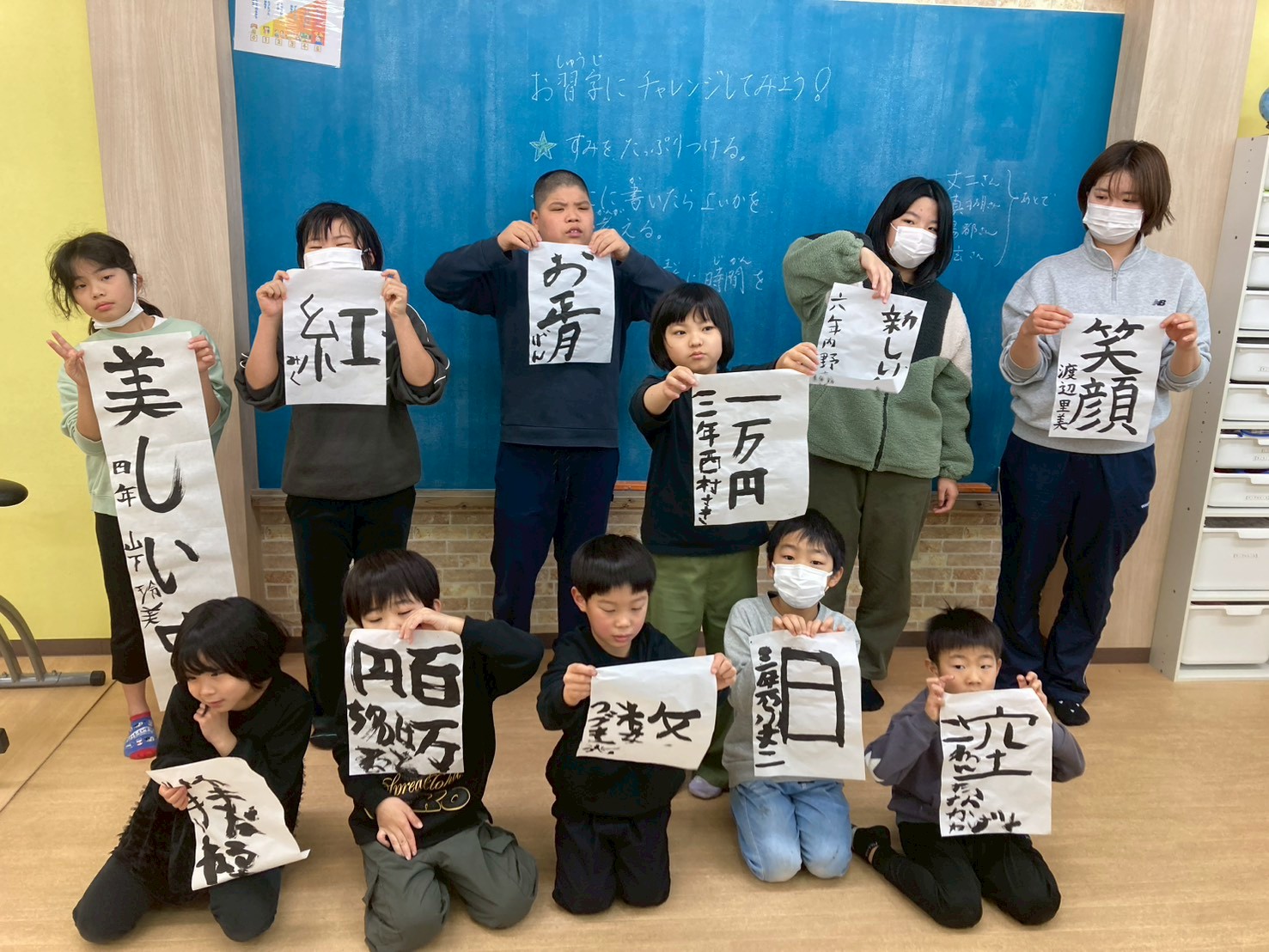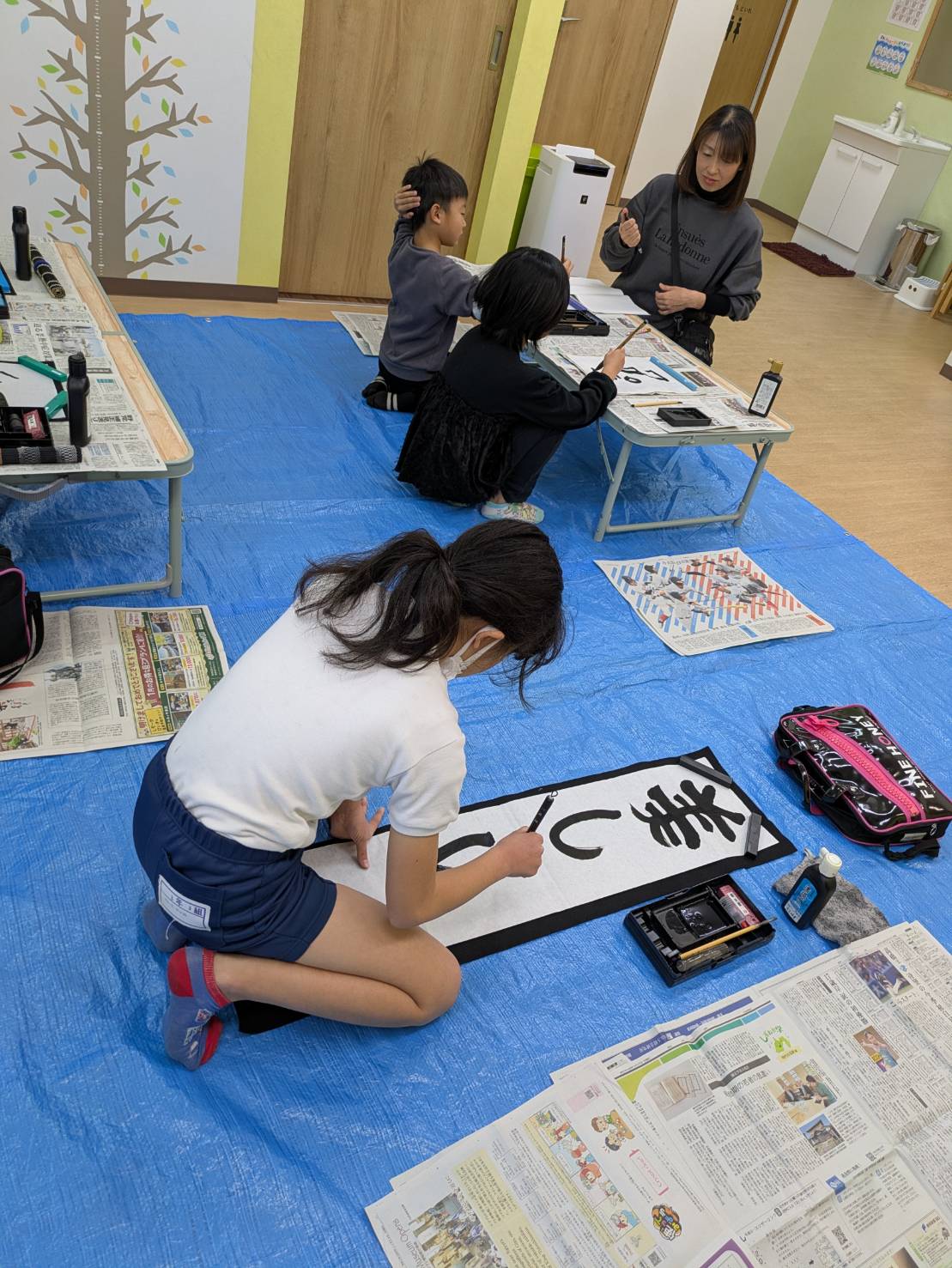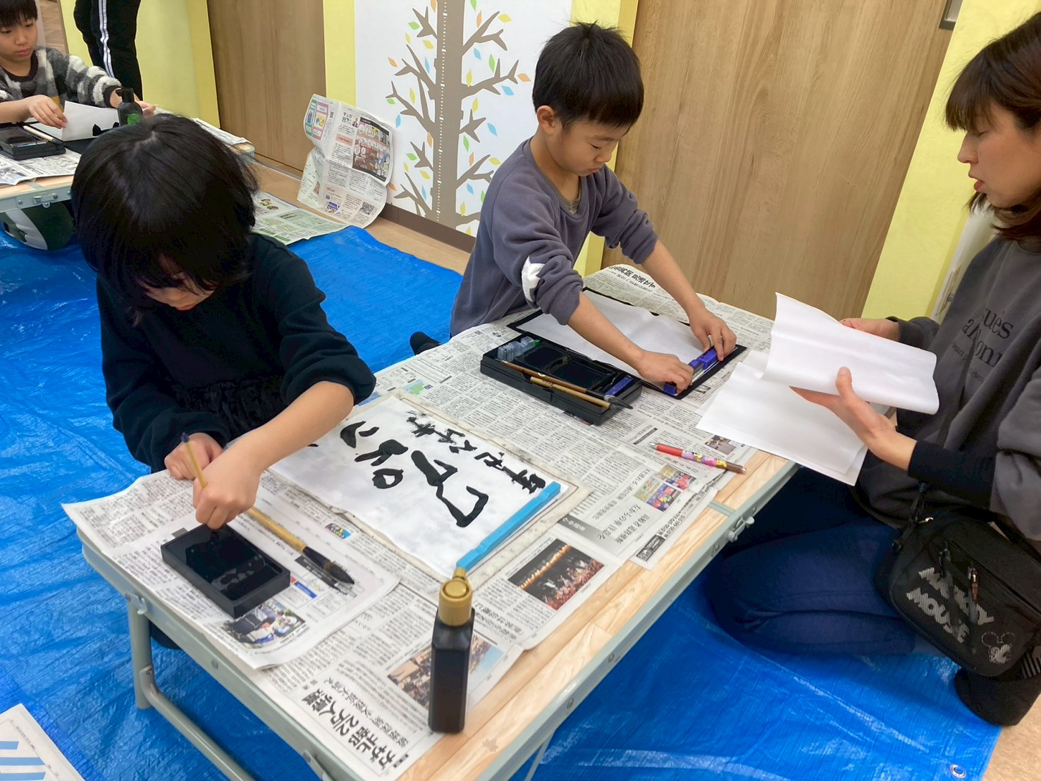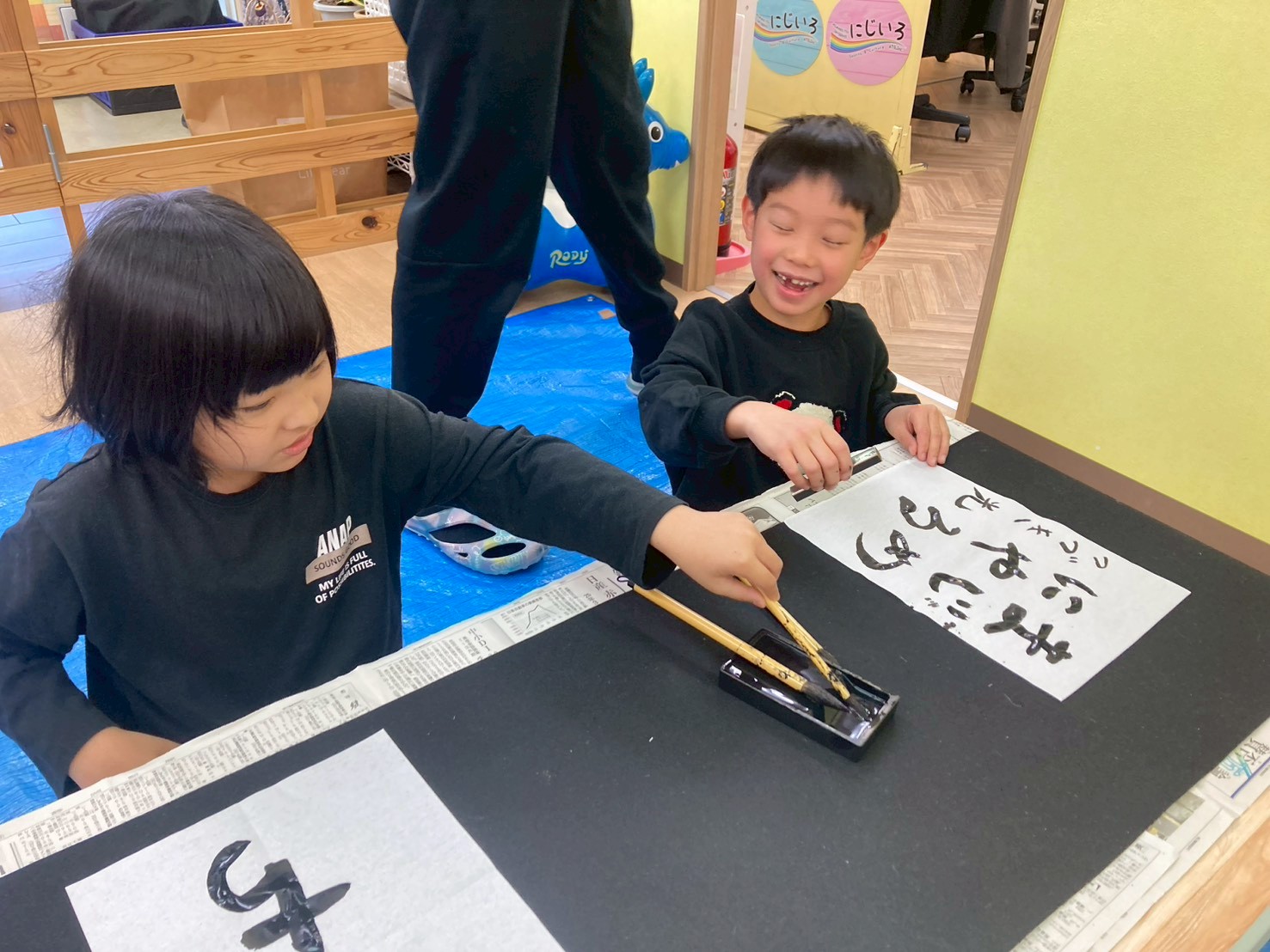 午前中は「書き初め」を行いました!近年、学校の宿題としての「書き初め」は減ってきていますが、物事に集中したり心を落ち着けるために🌈にじいろ では毎年、お正月に実施しています。最初は好きな文字を書き、徐々にお正月に関連した文字を考えて書いて行きました✨