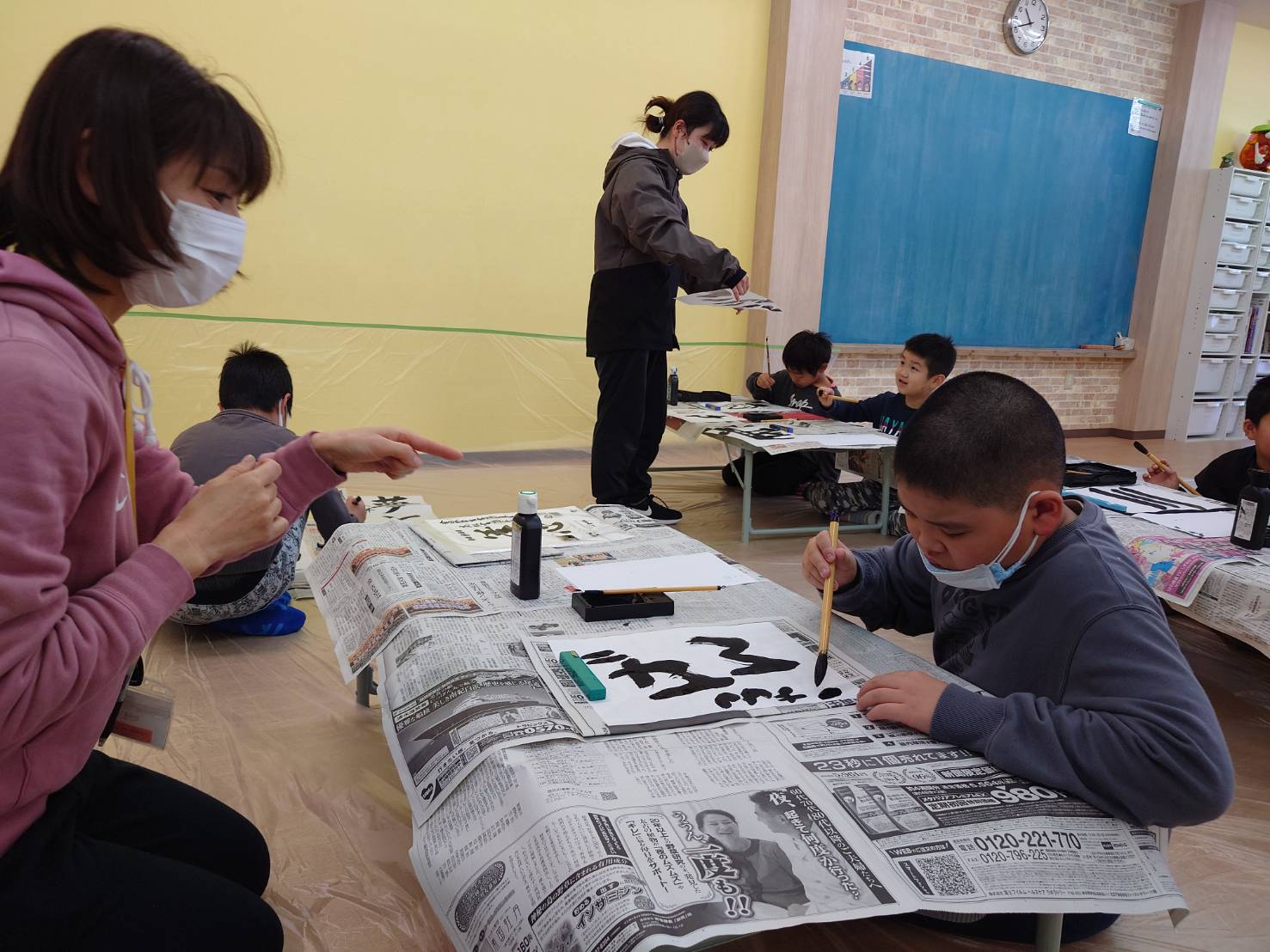 【書初めの様子】みんな面白い字をかきますね🤣 上手に書けました!💮
