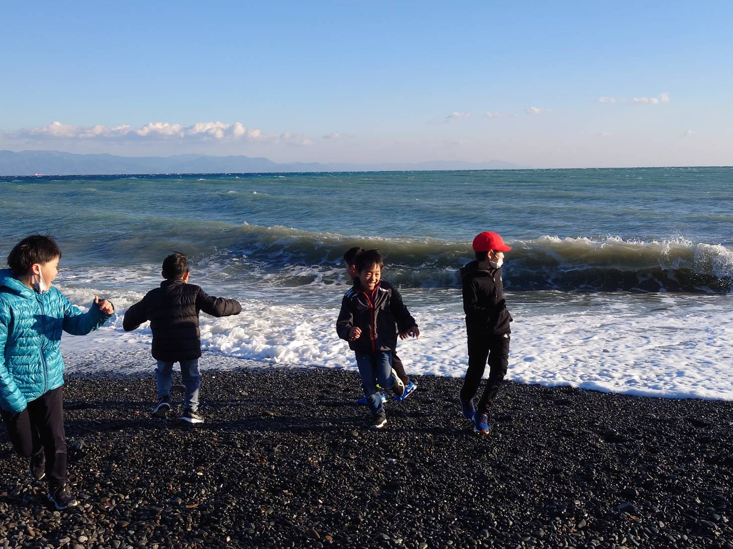 その後は木道を通り世界遺産の「三保の松原」へ行き、波打ち際で遊びました✨