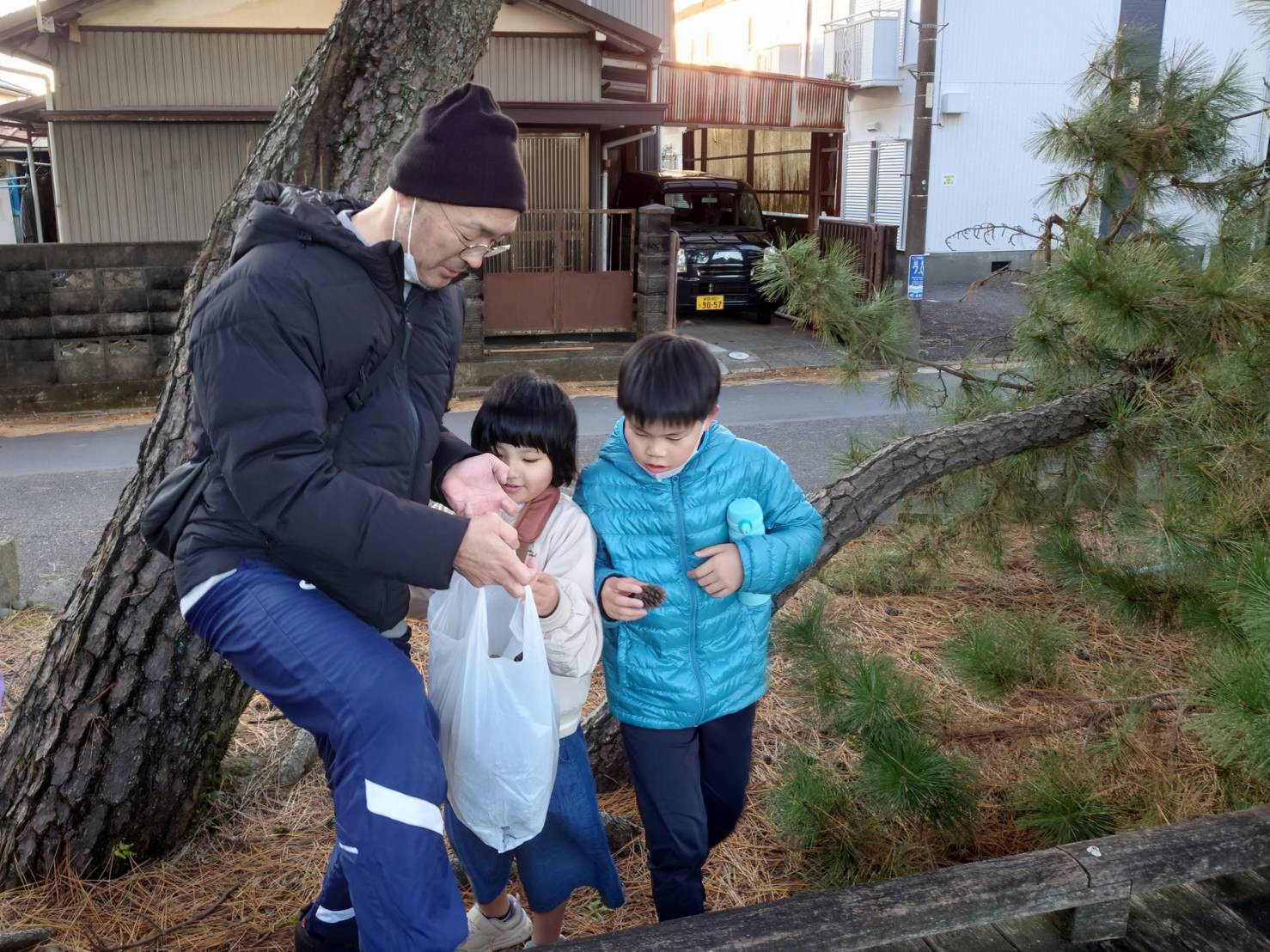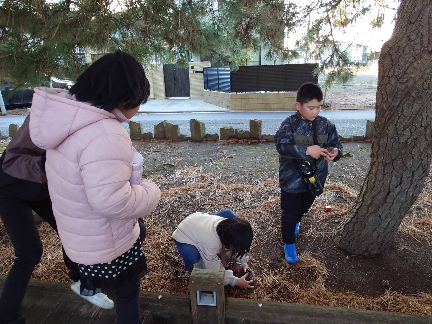 帰りには木道の脇に落ちている「松ぼっくり」を拾って楽しく帰路につきました!