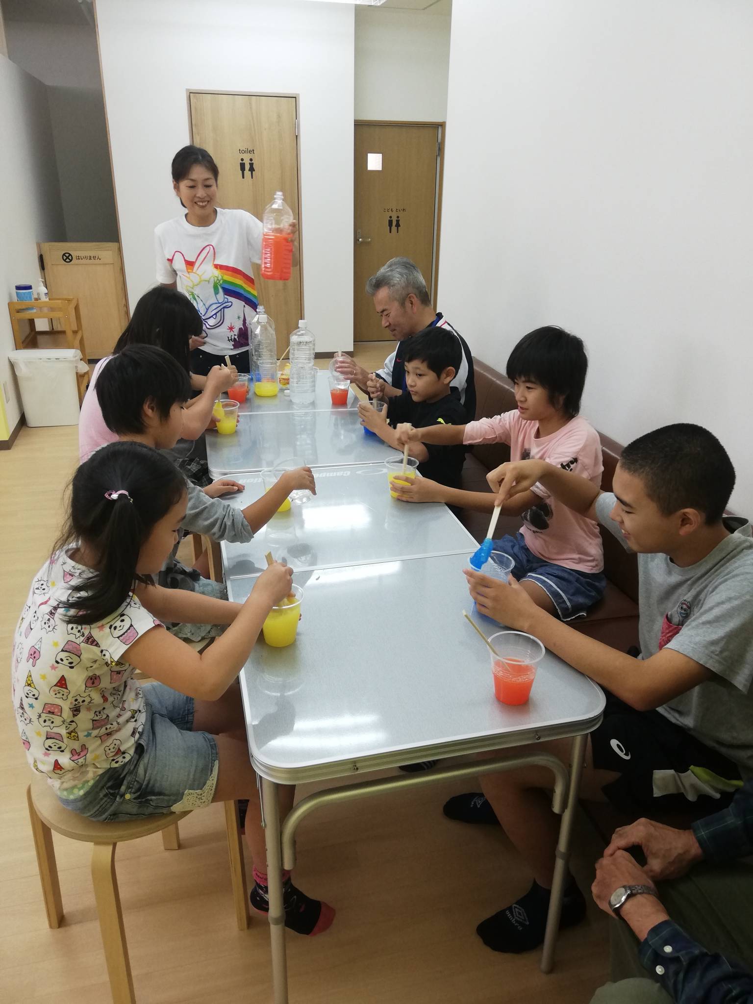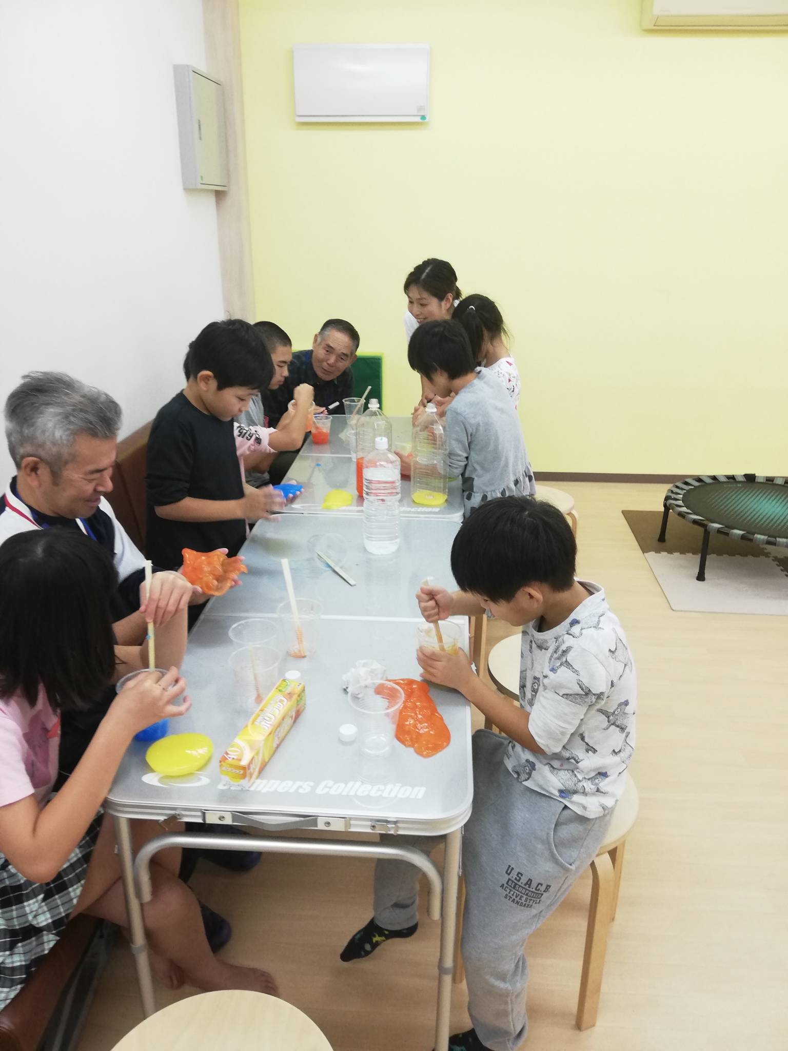 各自が好きな色を選び、混ぜて、いろんな固さのスライムができました😁✨
