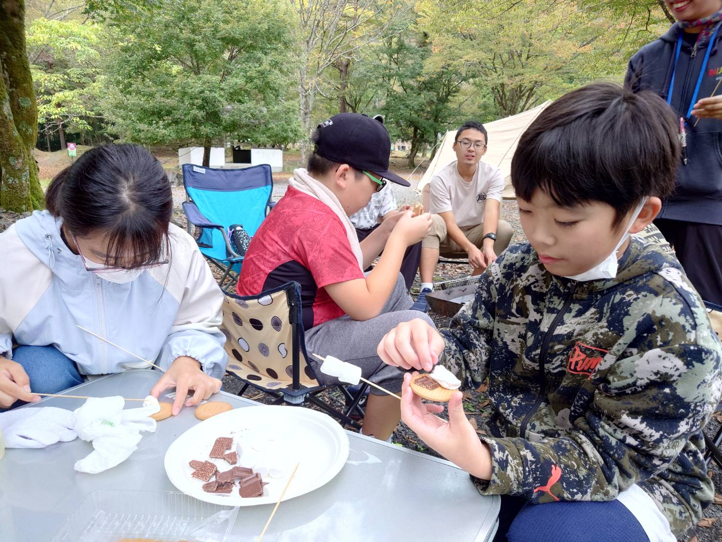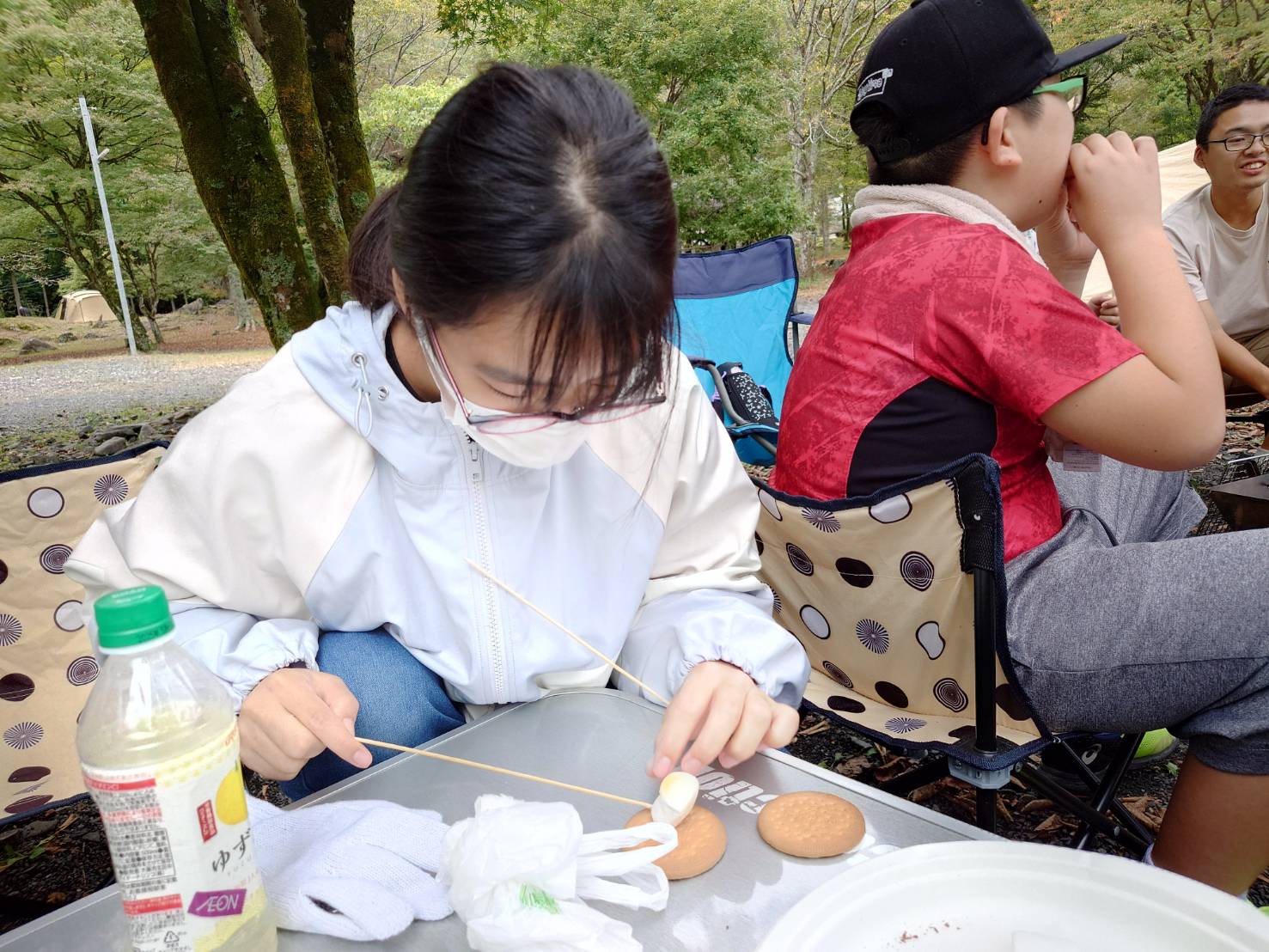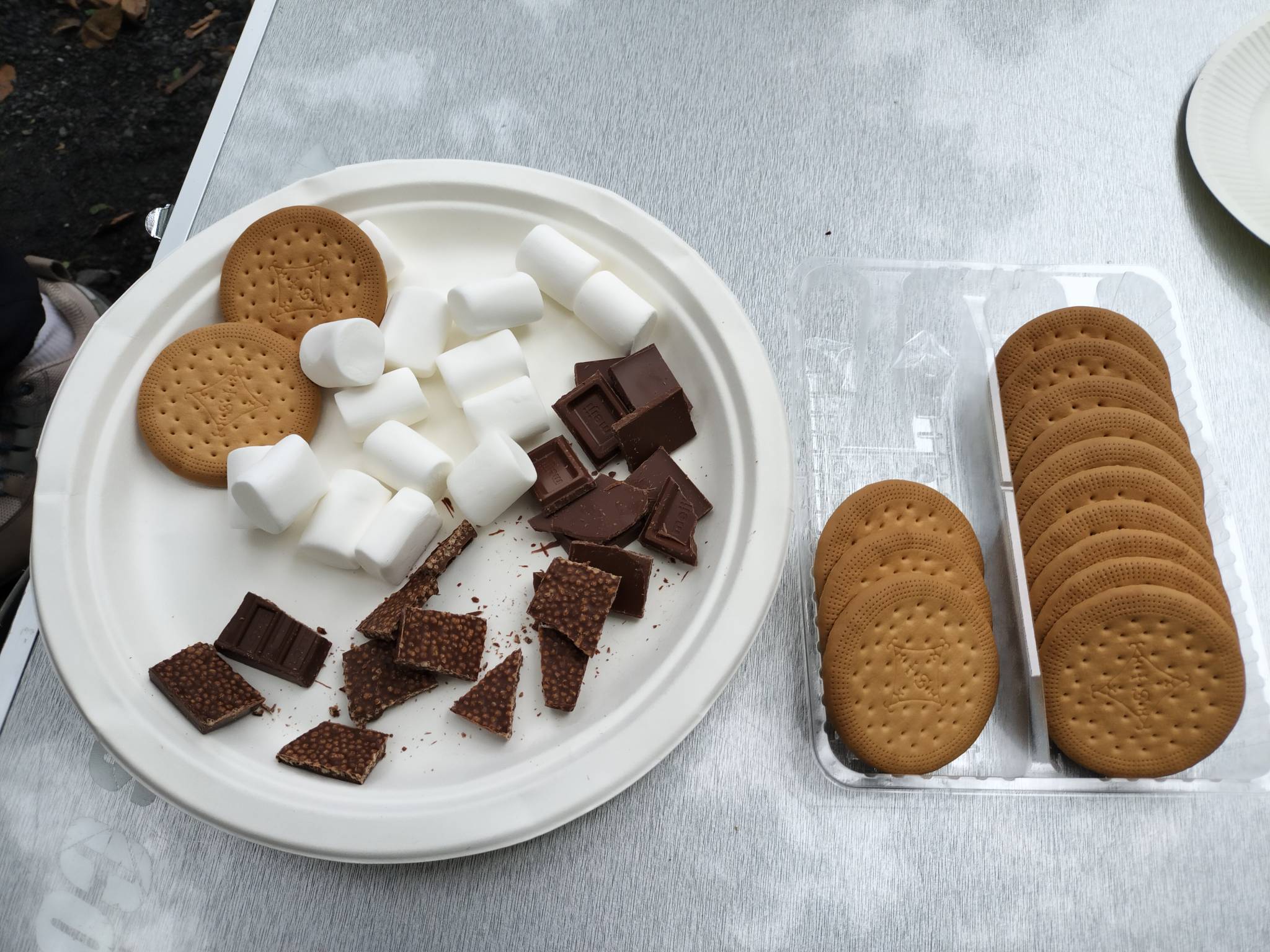 締めのおやつはマシュマロを炙り、ビスケットにチョコ🍫と一緒に挟んで食べる「スモア」も作って食べました😋