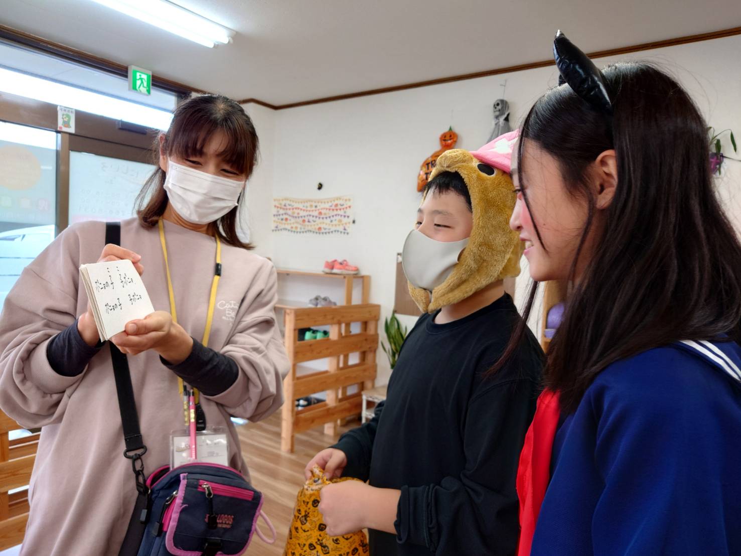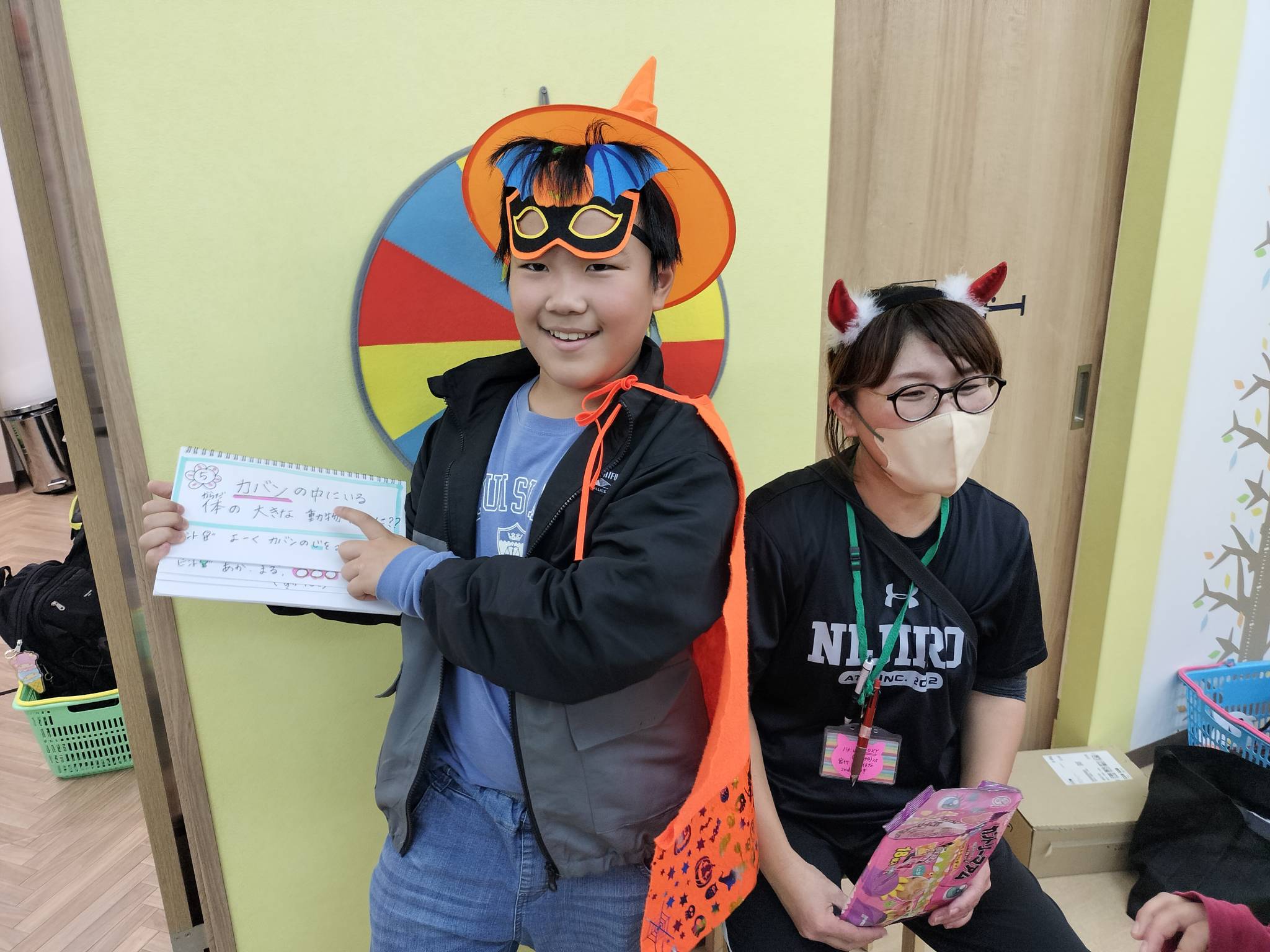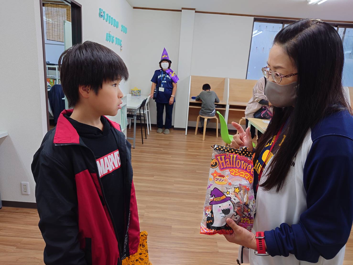 帰り際には「ハロウィン🎃あみだクジ」を行い大きなお菓子や風船のプレゼントもありました。