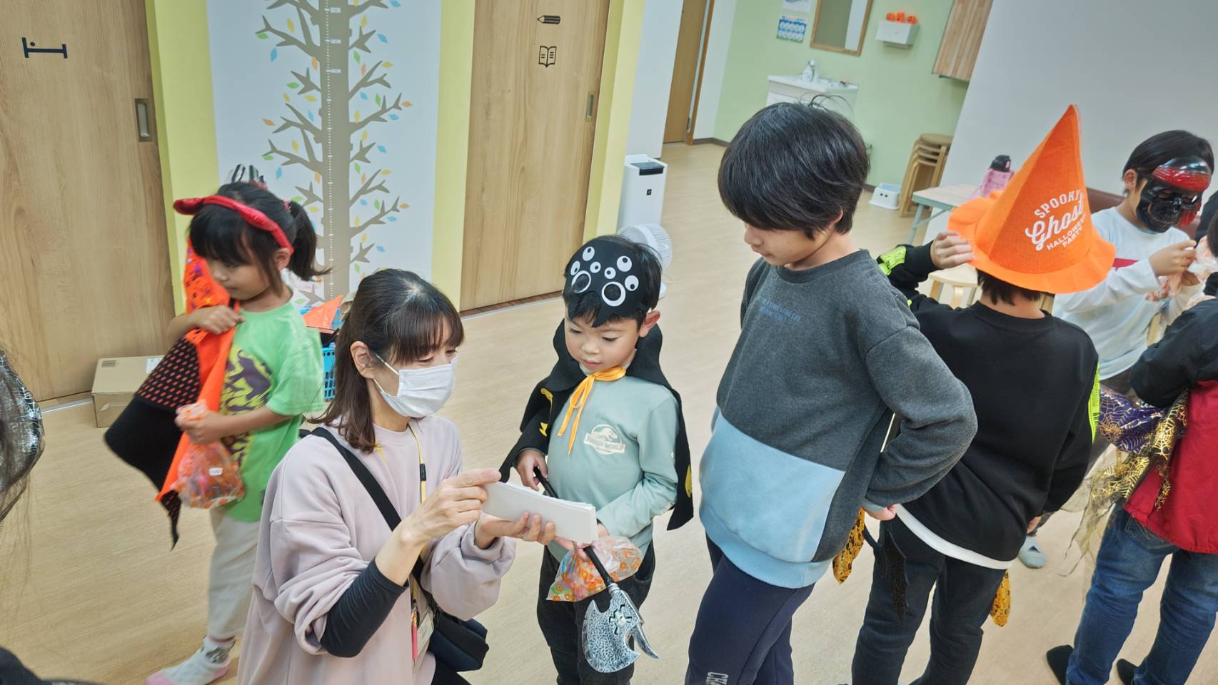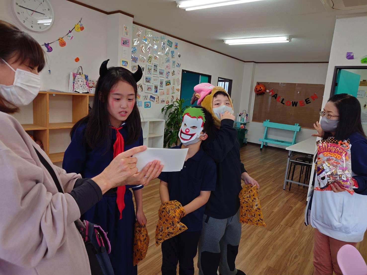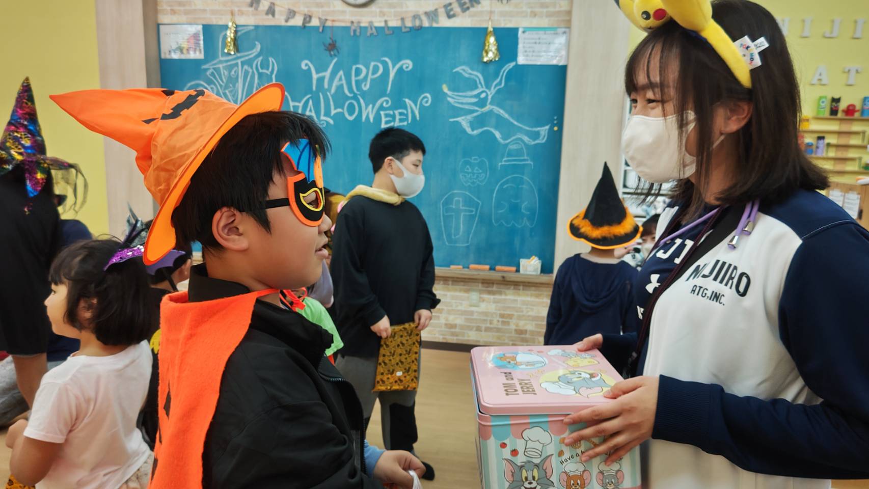 その後、子供達はプチ仮装をして色々なスタッフの所に行き、お菓子を貰いました。