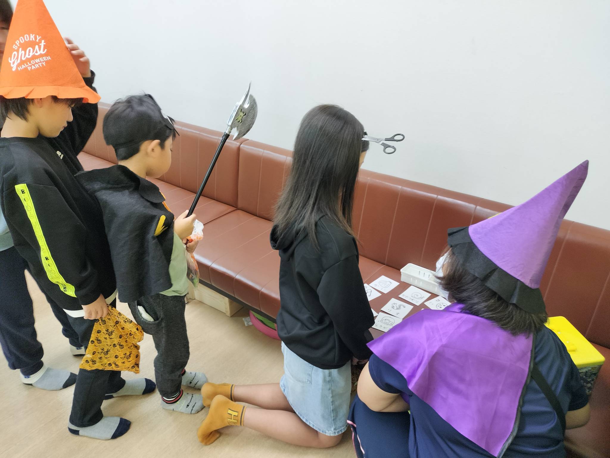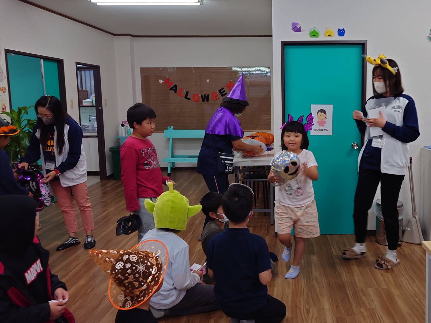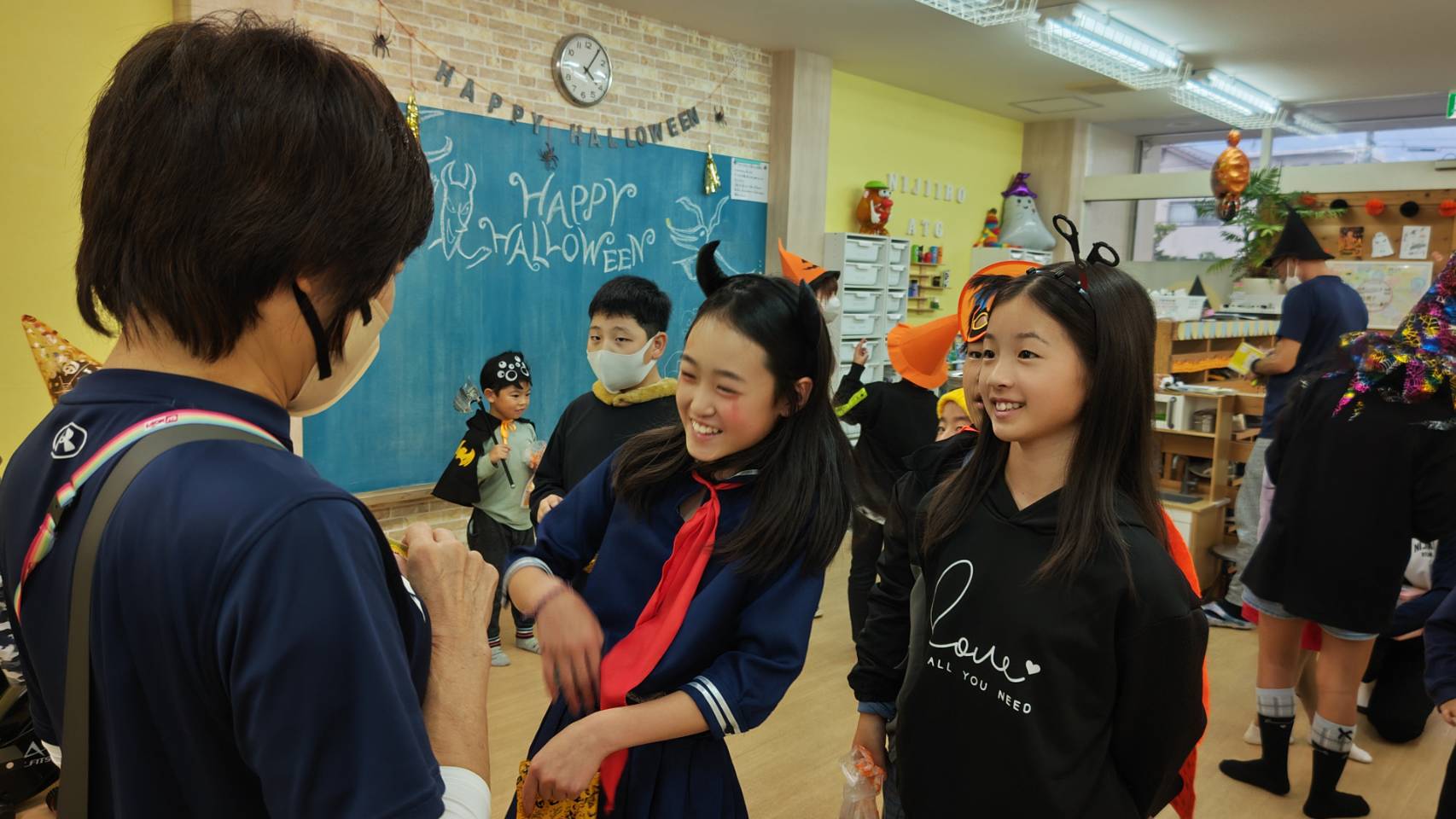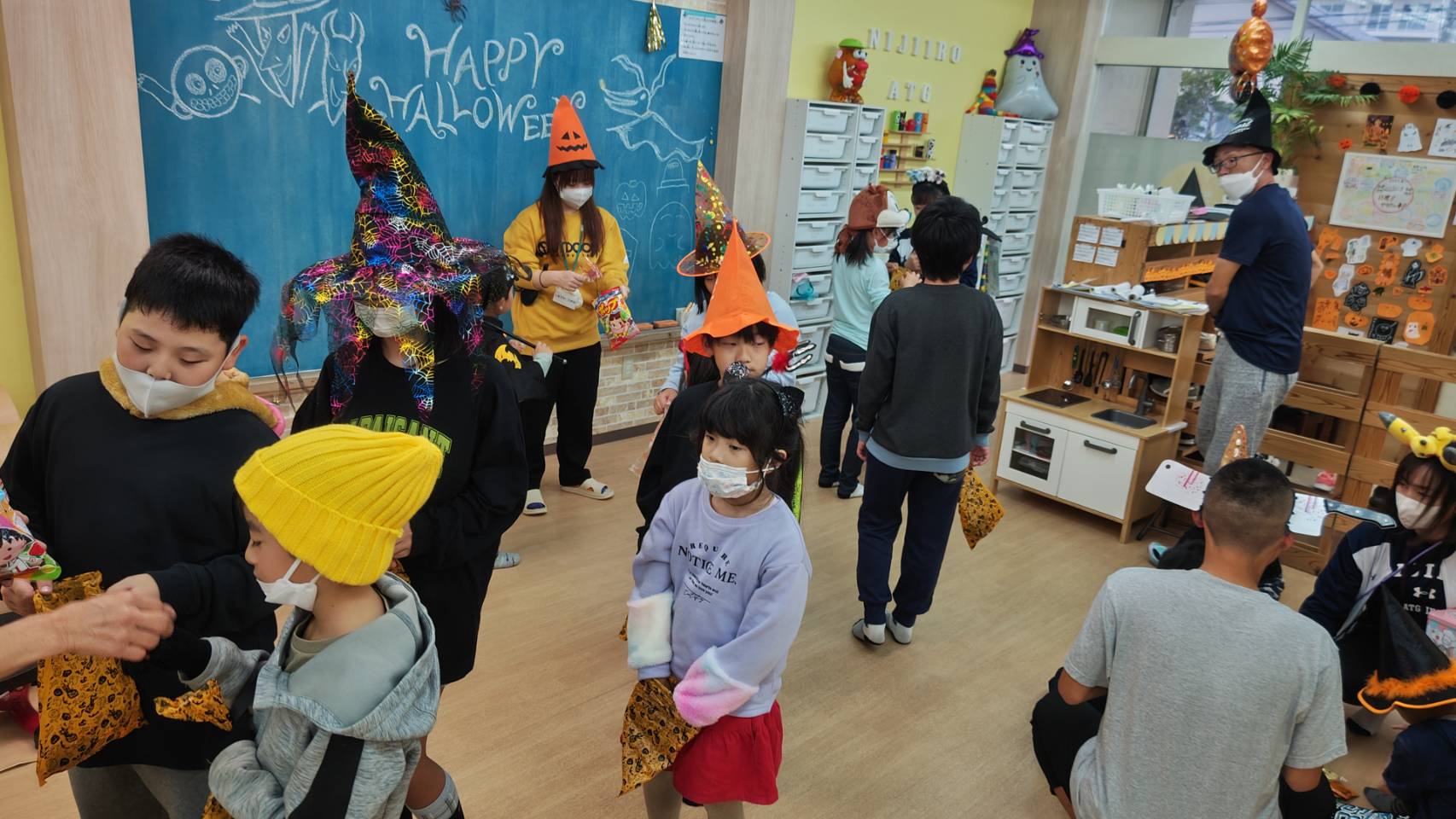 その後、子供達はプチ仮装をして色々なスタッフの所に行き、お菓子を貰いました。