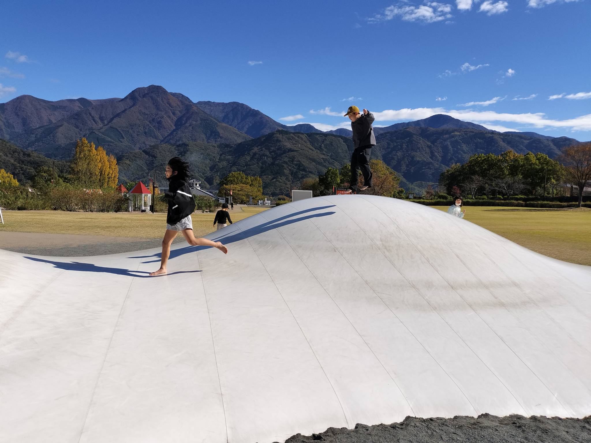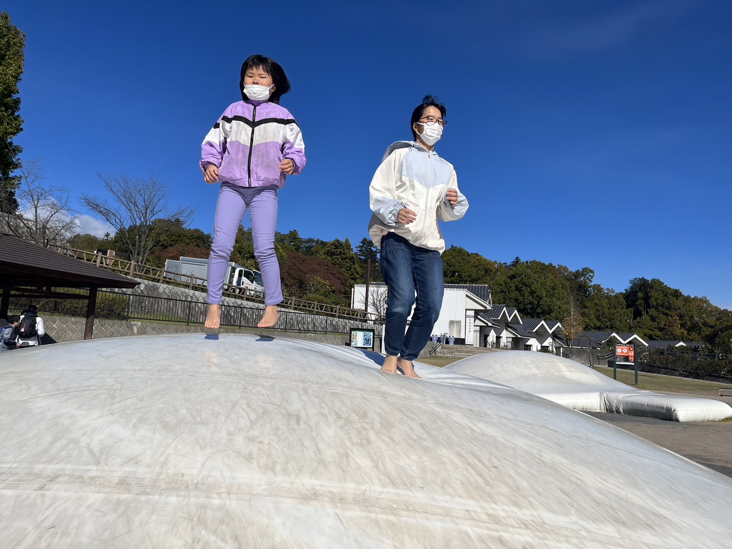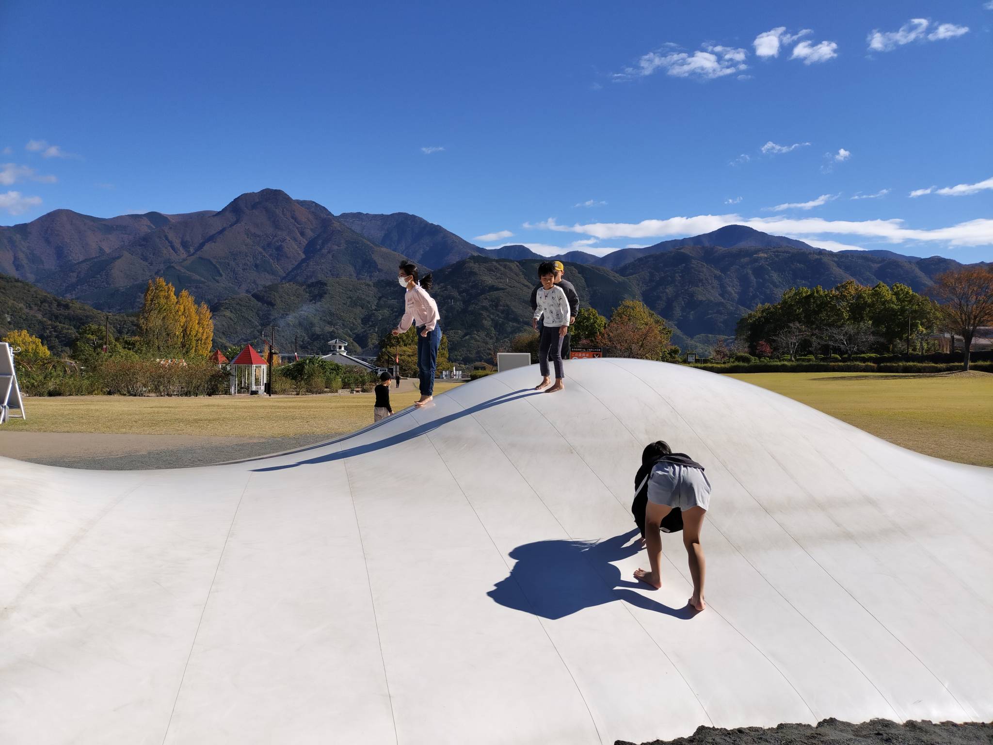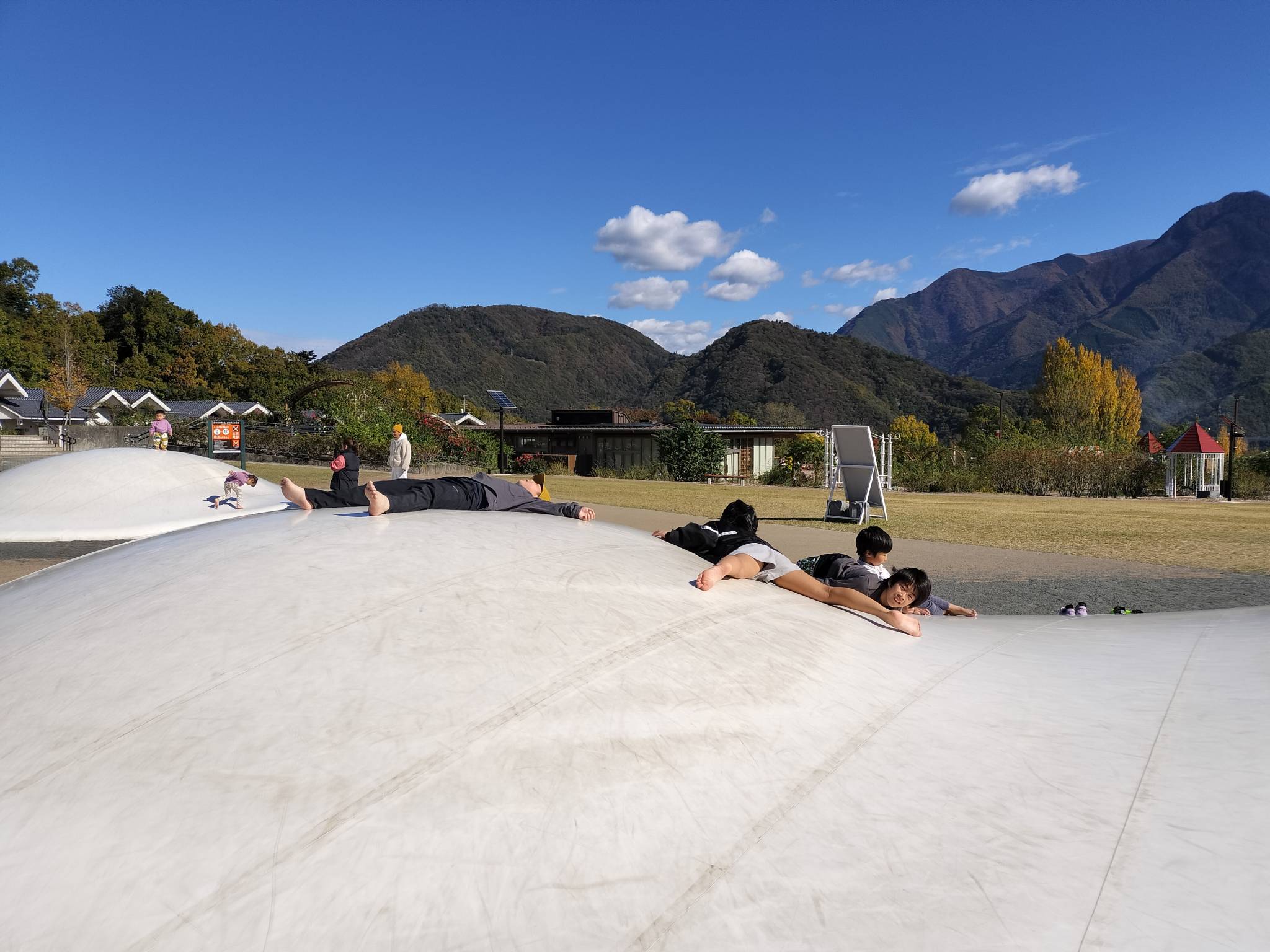 お目当ての「ふわふわドーム」で沢山、身体を動かしたり、遊具や迷路、紅葉🍁を楽しんできました✨