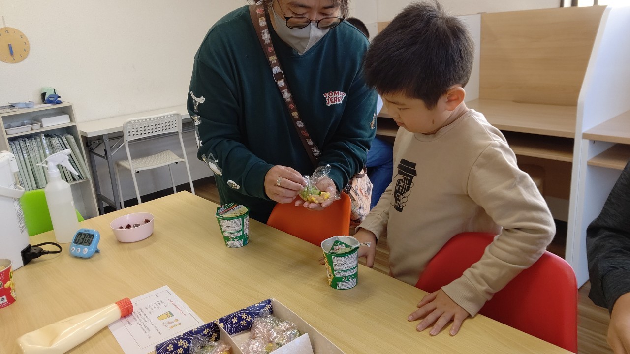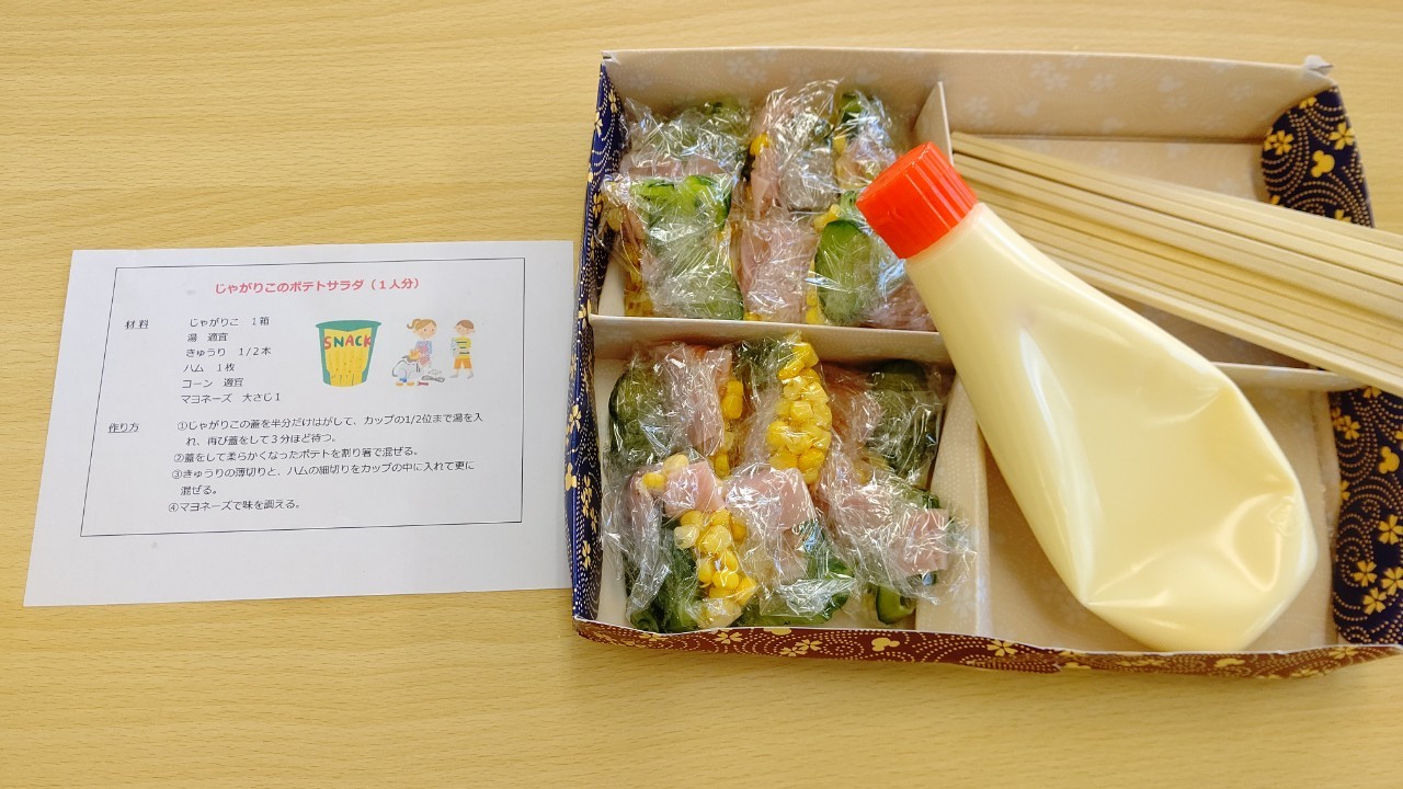 午前中に「地震防災センター」へ行き防災意識を高めてから午後は「防災おやつ作り」として「じゃがりこポテトサラダ」を作りました!😋