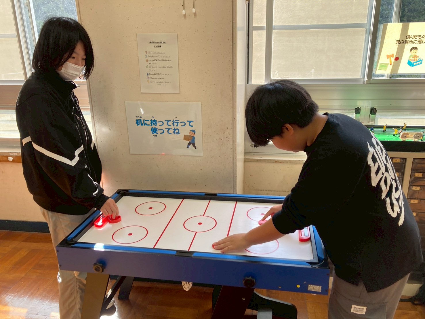 今日は「水見色小学校」に遊びに行ってきました! 色々な玩具で遊んだり体育館でもサッカーやバスケが出来るので子供達はとても楽しんでいました!