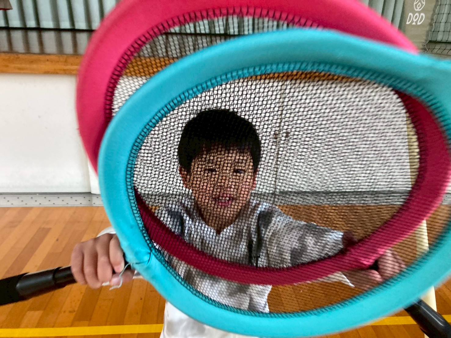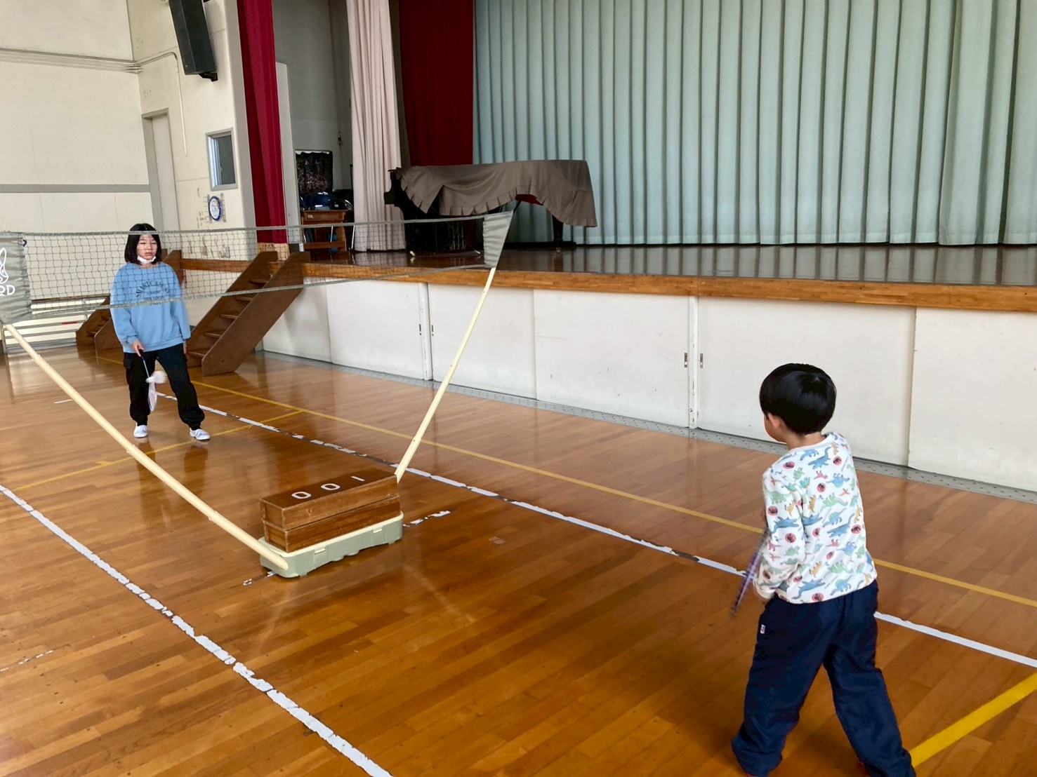 午前中は大里東小体育館でバドミントンやバレーボール、バスケットボールなどをして体を動かしました。