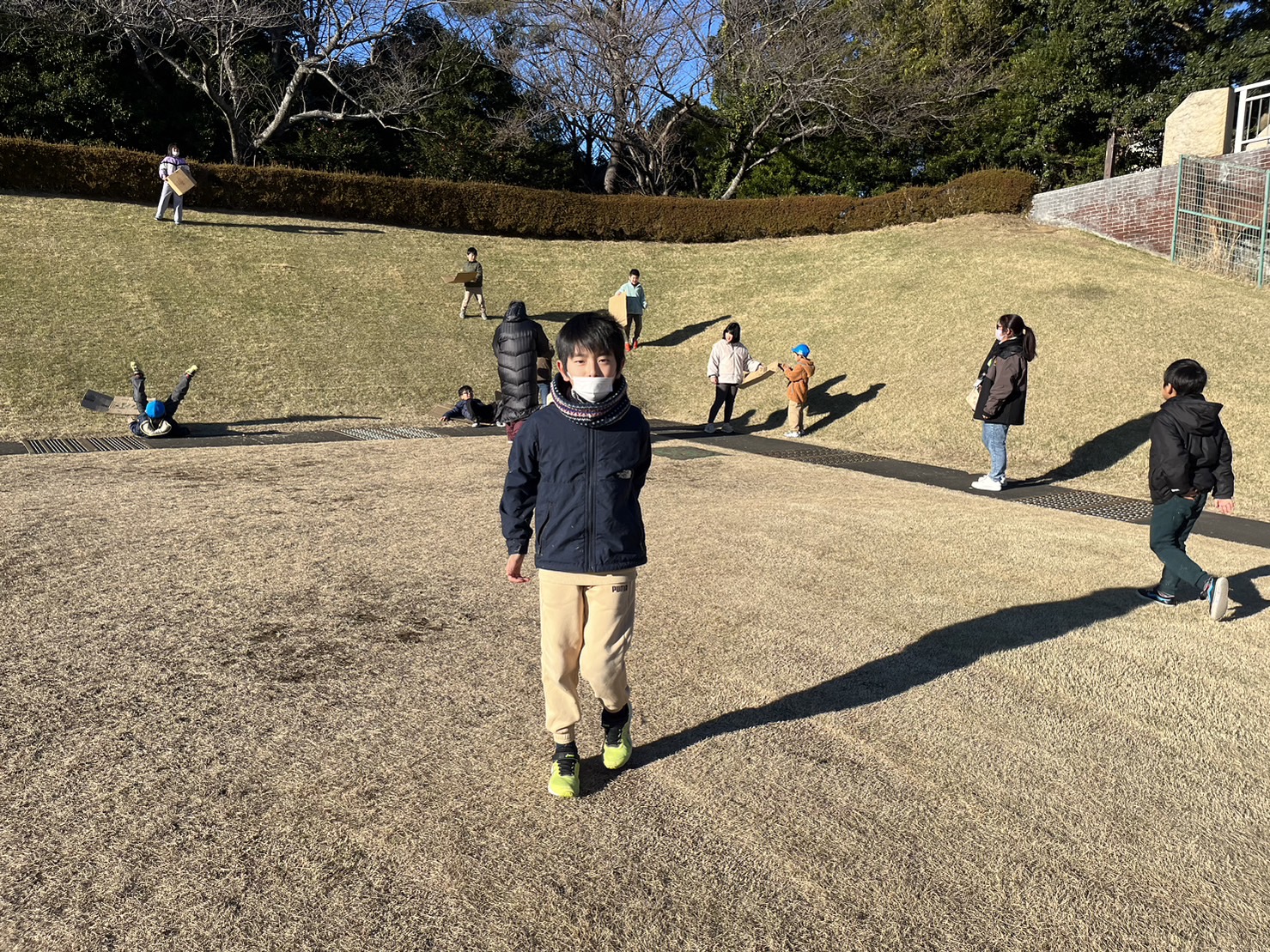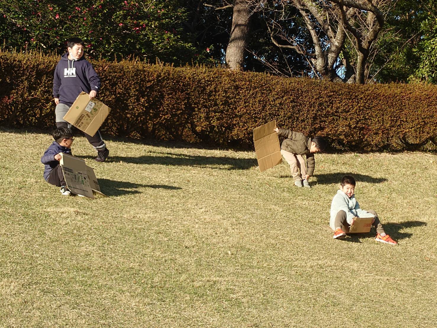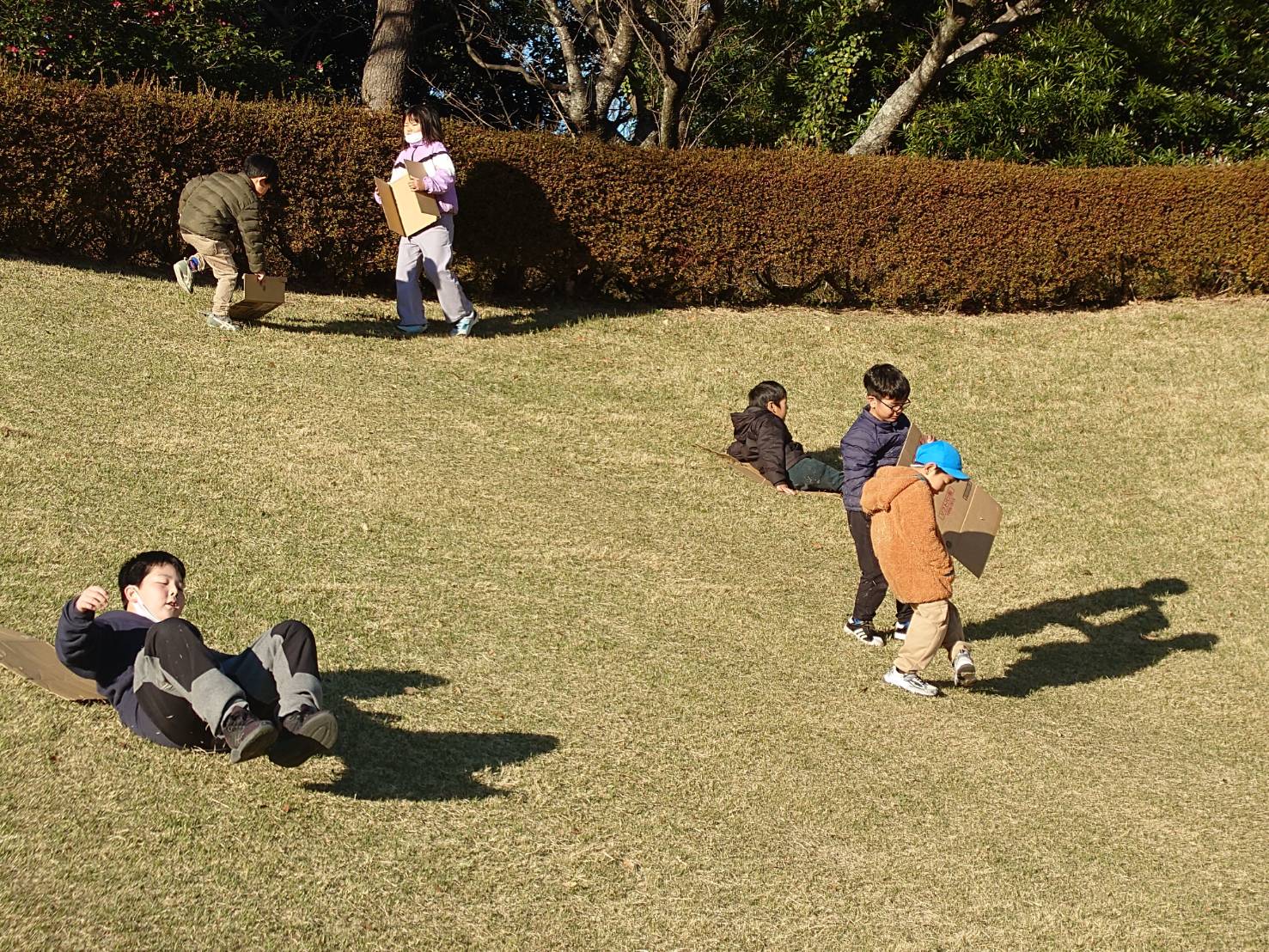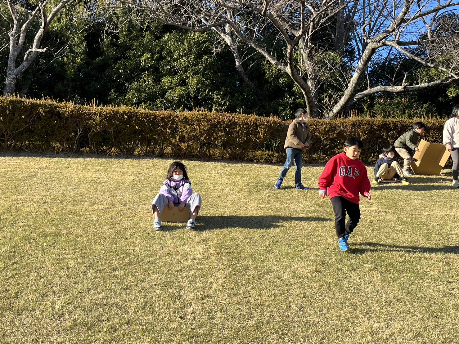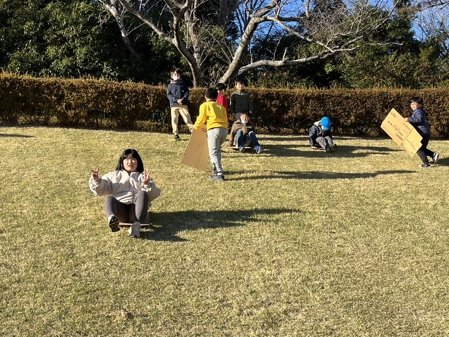 ダンボールをお尻にひいて「ソリ遊び」を楽しみました✨