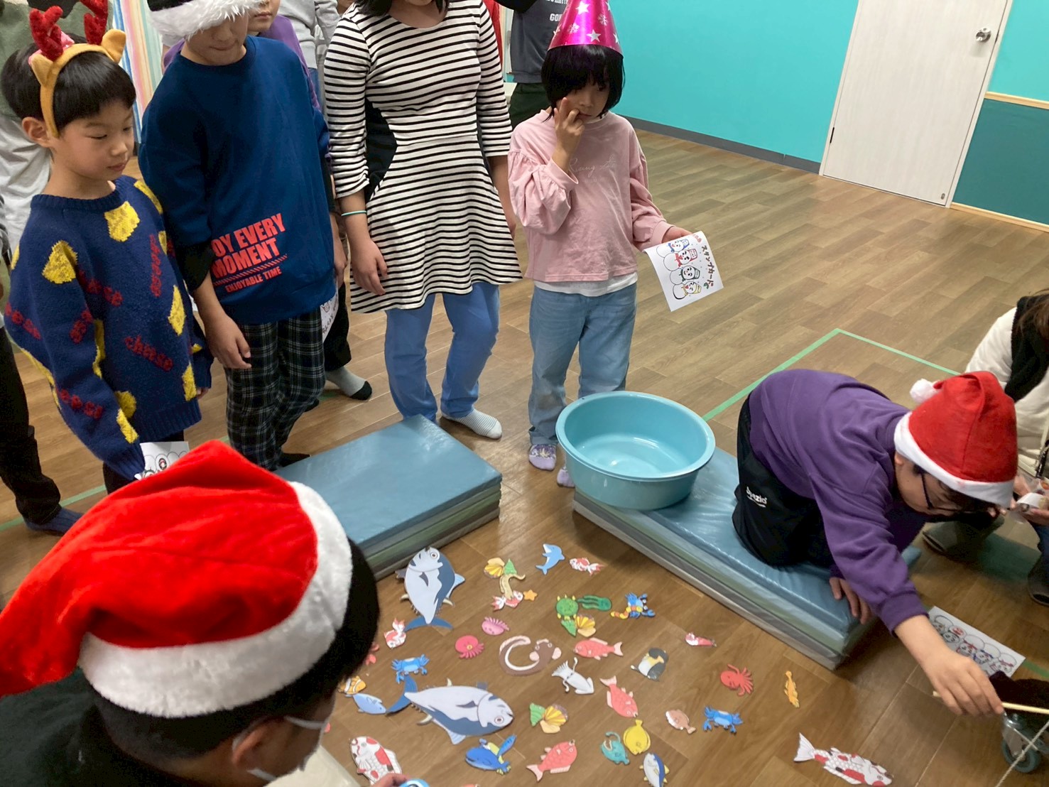 今年は「魚釣り」「ボーリング」「カーリング」「引っ張りゲーム」「何が入ってる?」の5種目を行いました!全てに参加するとビンゴカードを貰えます。