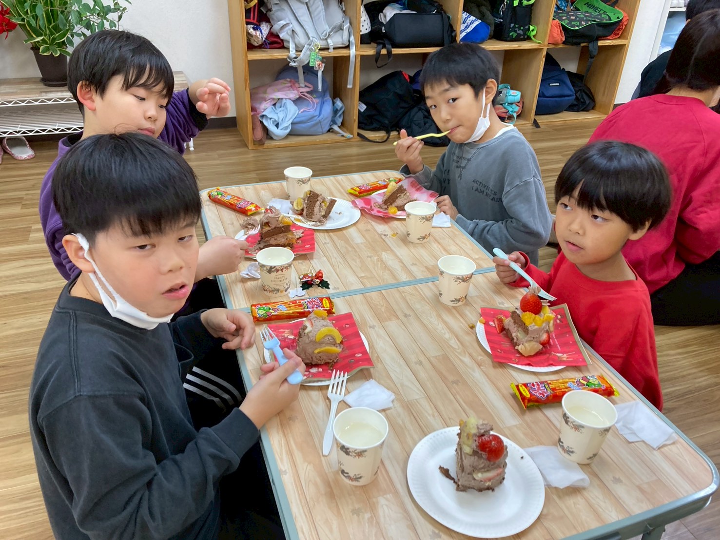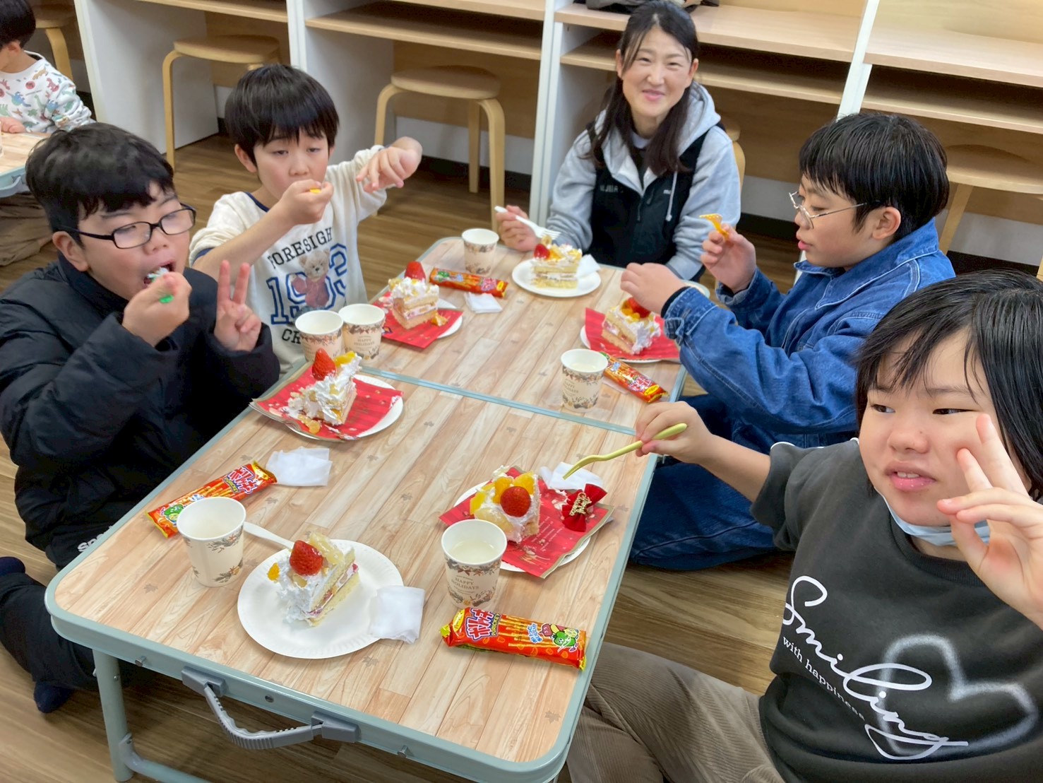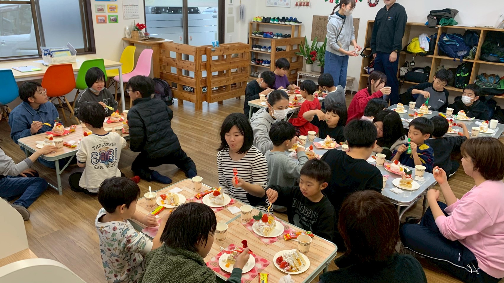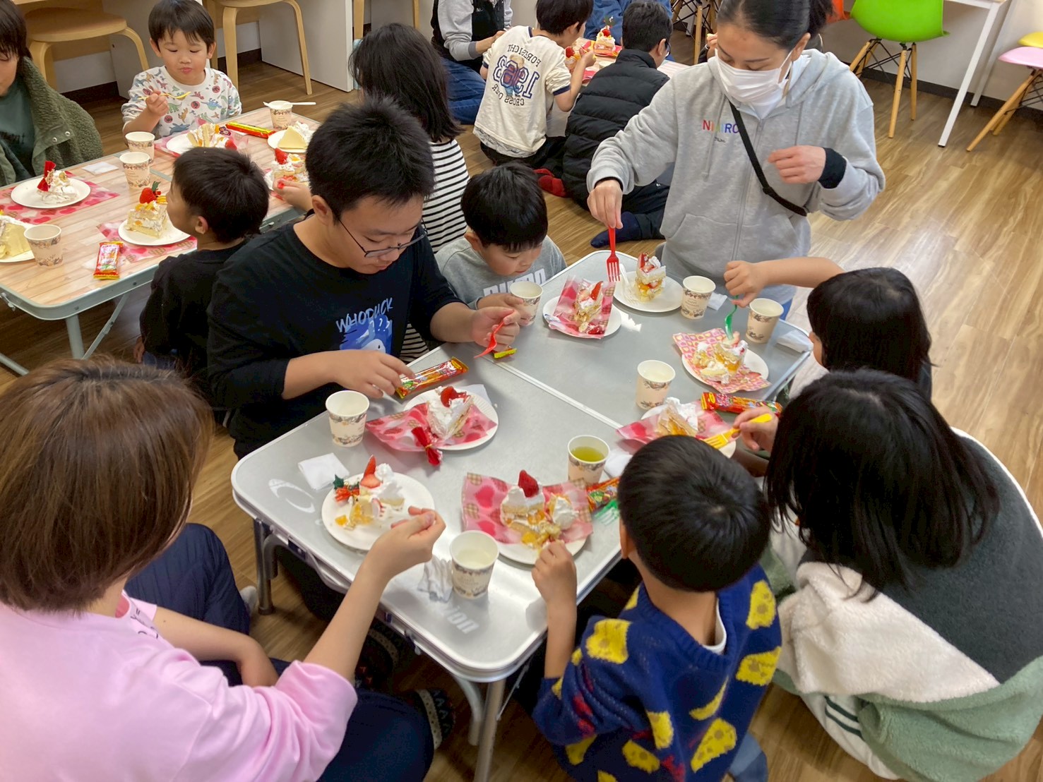 午後は「クリスマス会🎄」を行いました!午前中に作ったクリスマスケーキ🎂をグループ事に食べてから、スタッフが考えた色々なゲームにチャレンジしました!