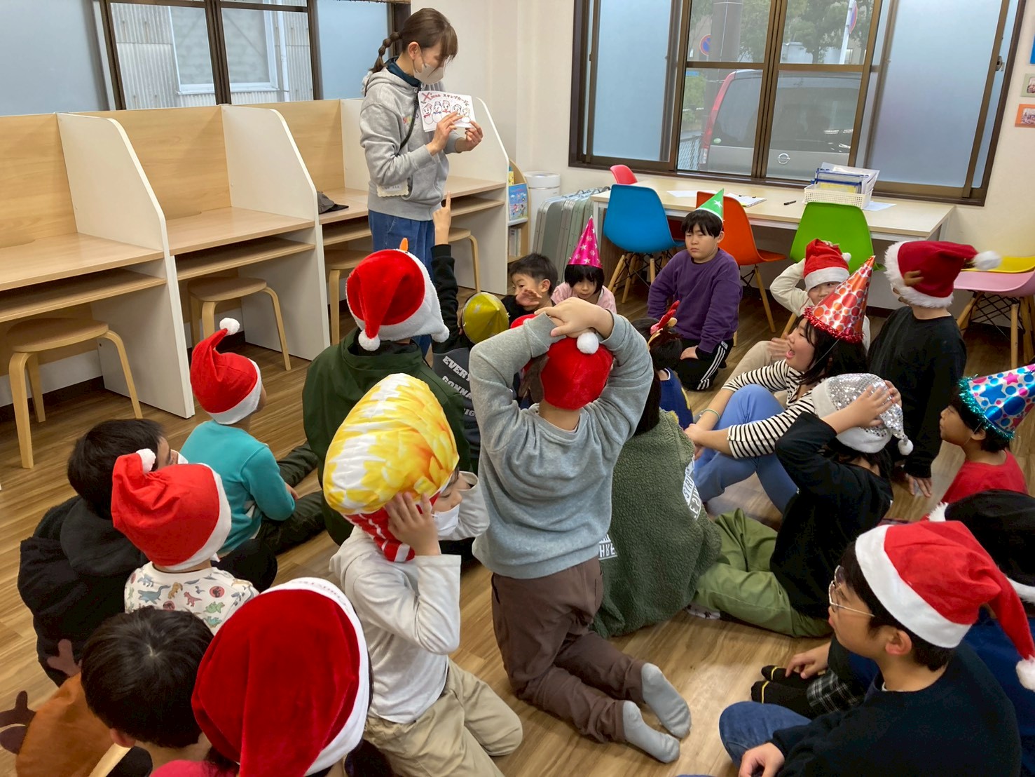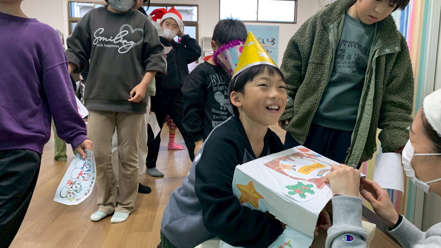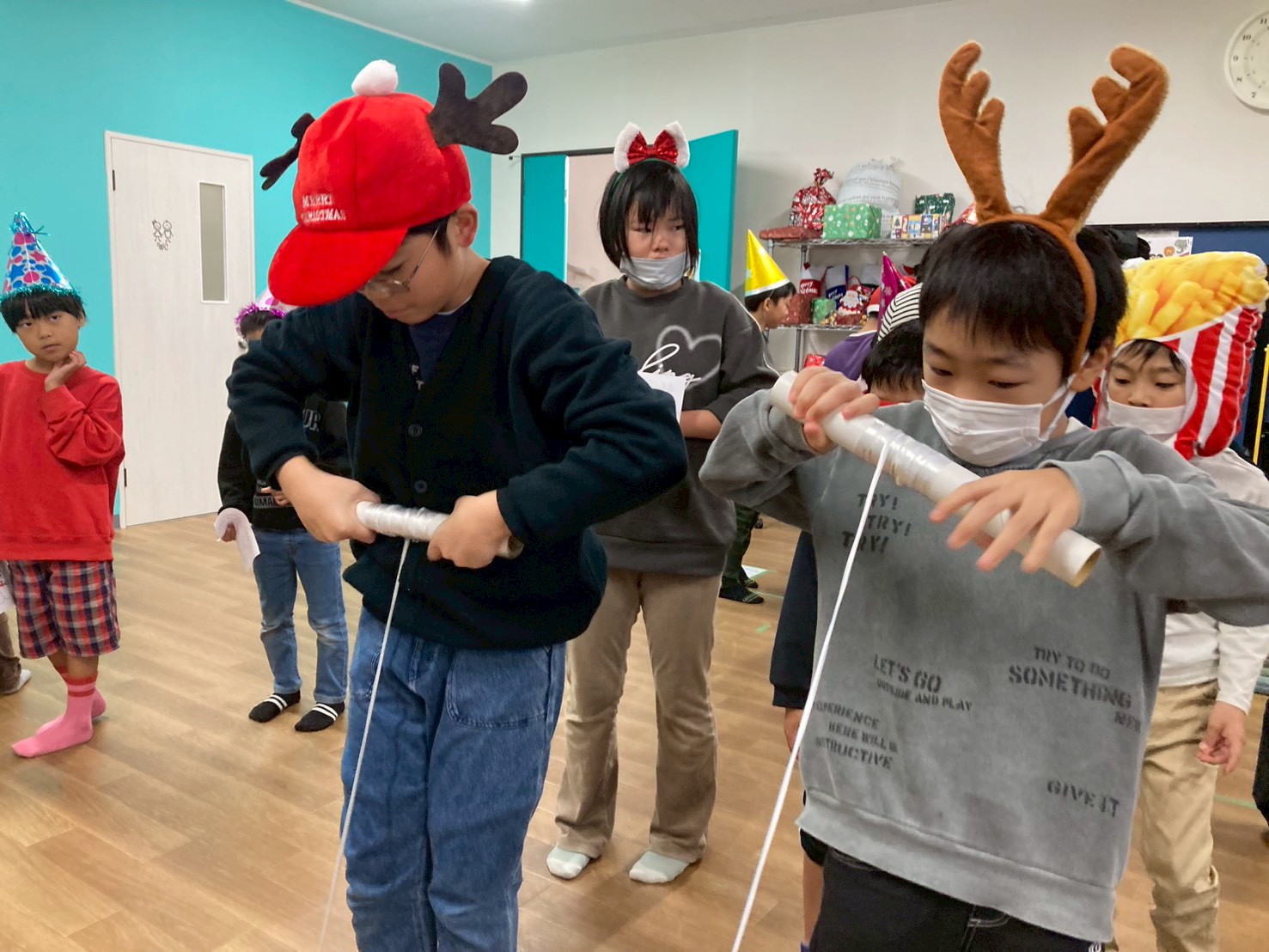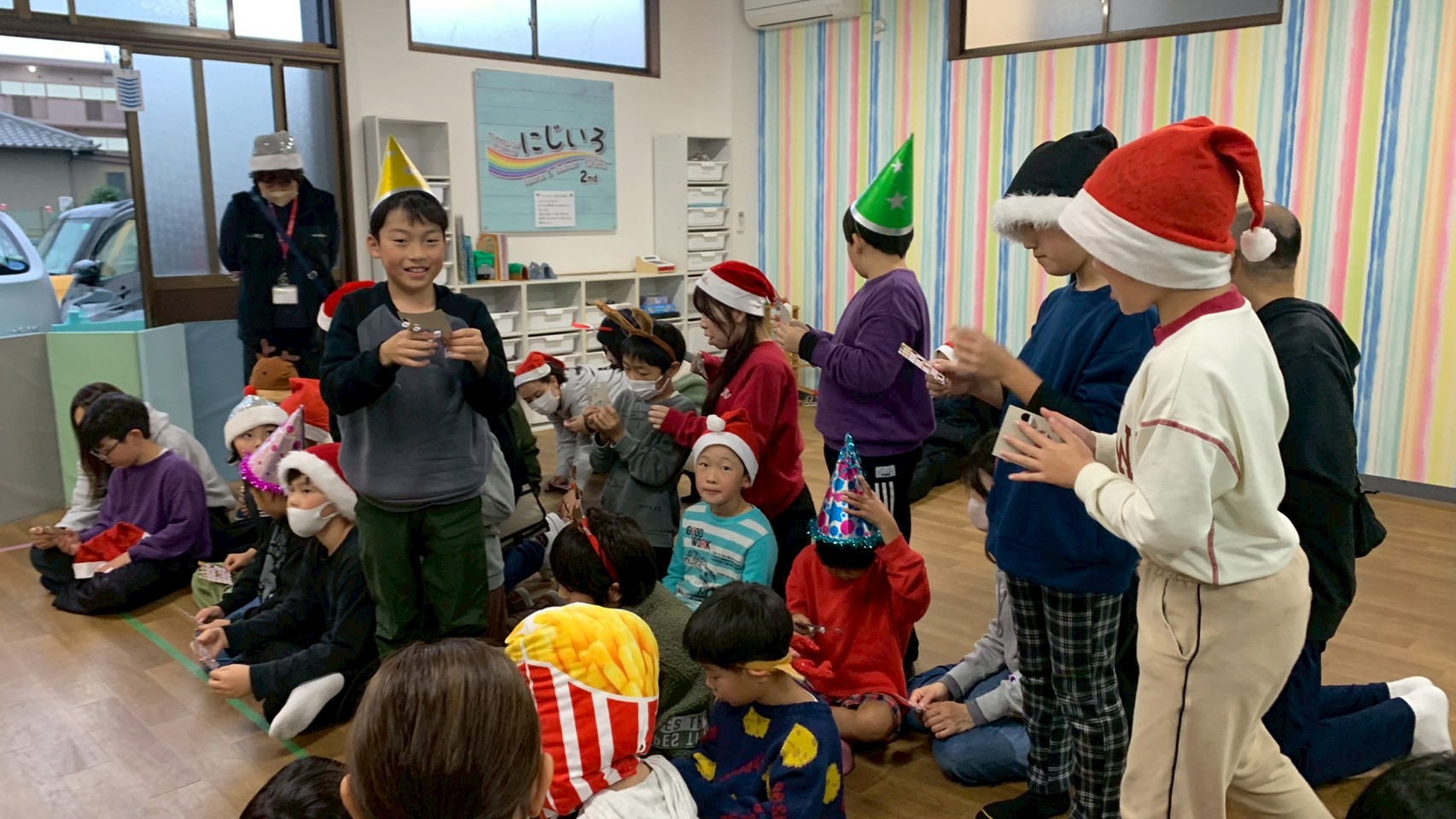 午後は「クリスマス会🎄」を行いました!午前中に作ったクリスマスケーキ🎂をグループ事に食べてから、スタッフが考えた色々なゲームにチャレンジしました!