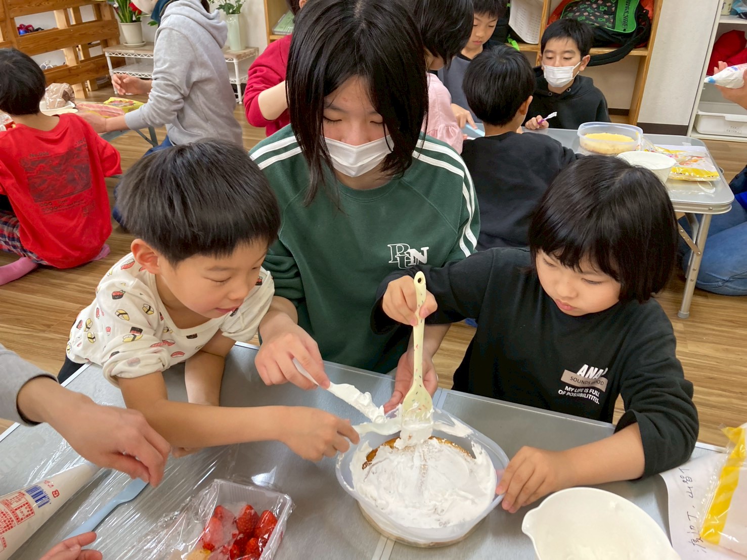 今年も恒例行事となっているクリスマス🎄のイベントとしてクリスマスのホールケーキ🎅🎂作りを行いました!