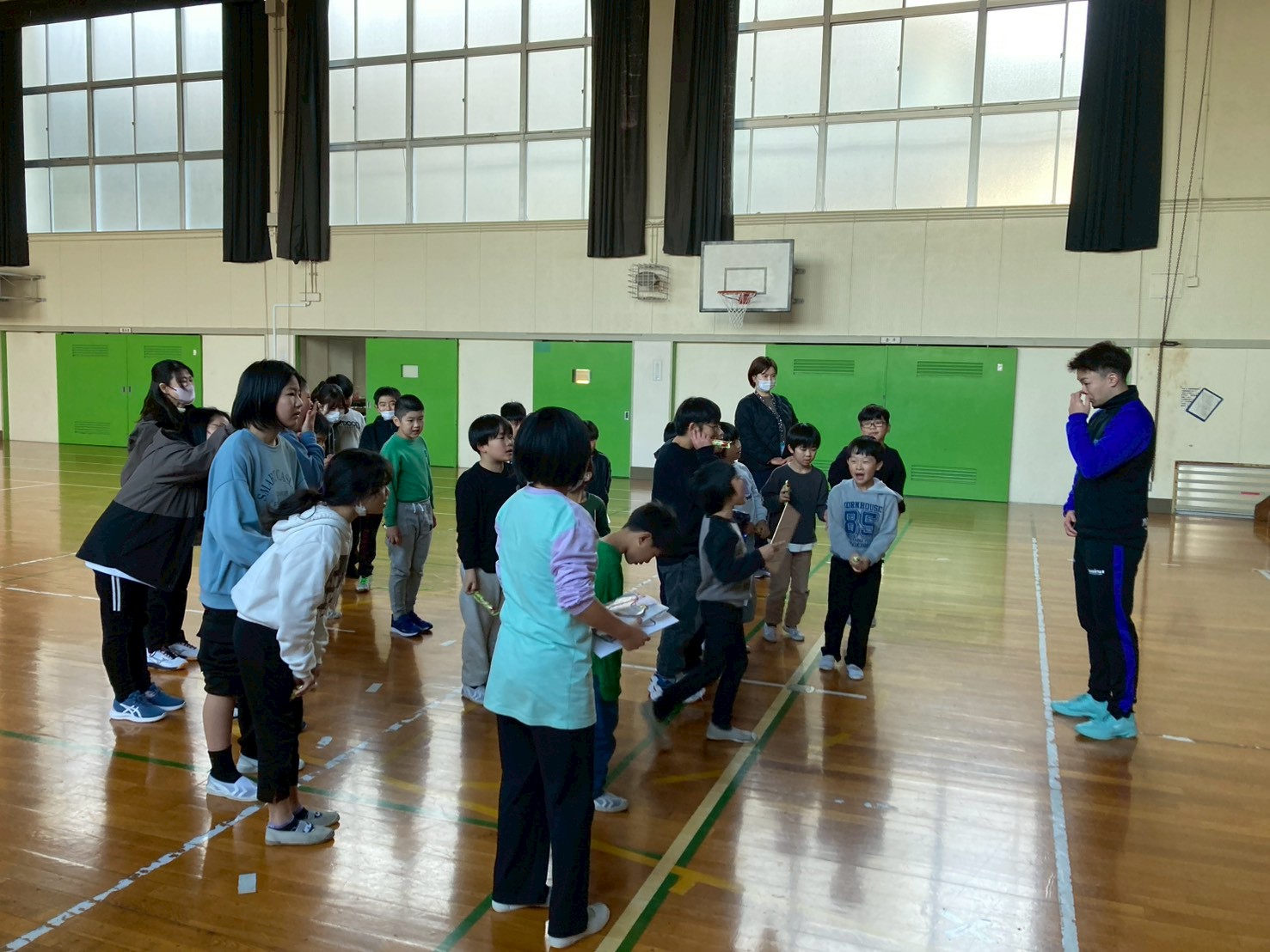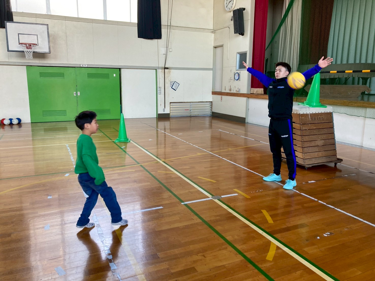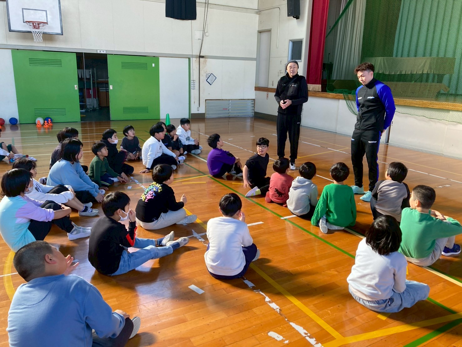 今日は今年最後の🌈にじいろ の営業日となりました。今日のイベントは「プロスポーツ選手によるスポーツ教室」としてハンドボールのリーグhから永平寺ブルーサンダーの田代健流 選手に来て頂きました。