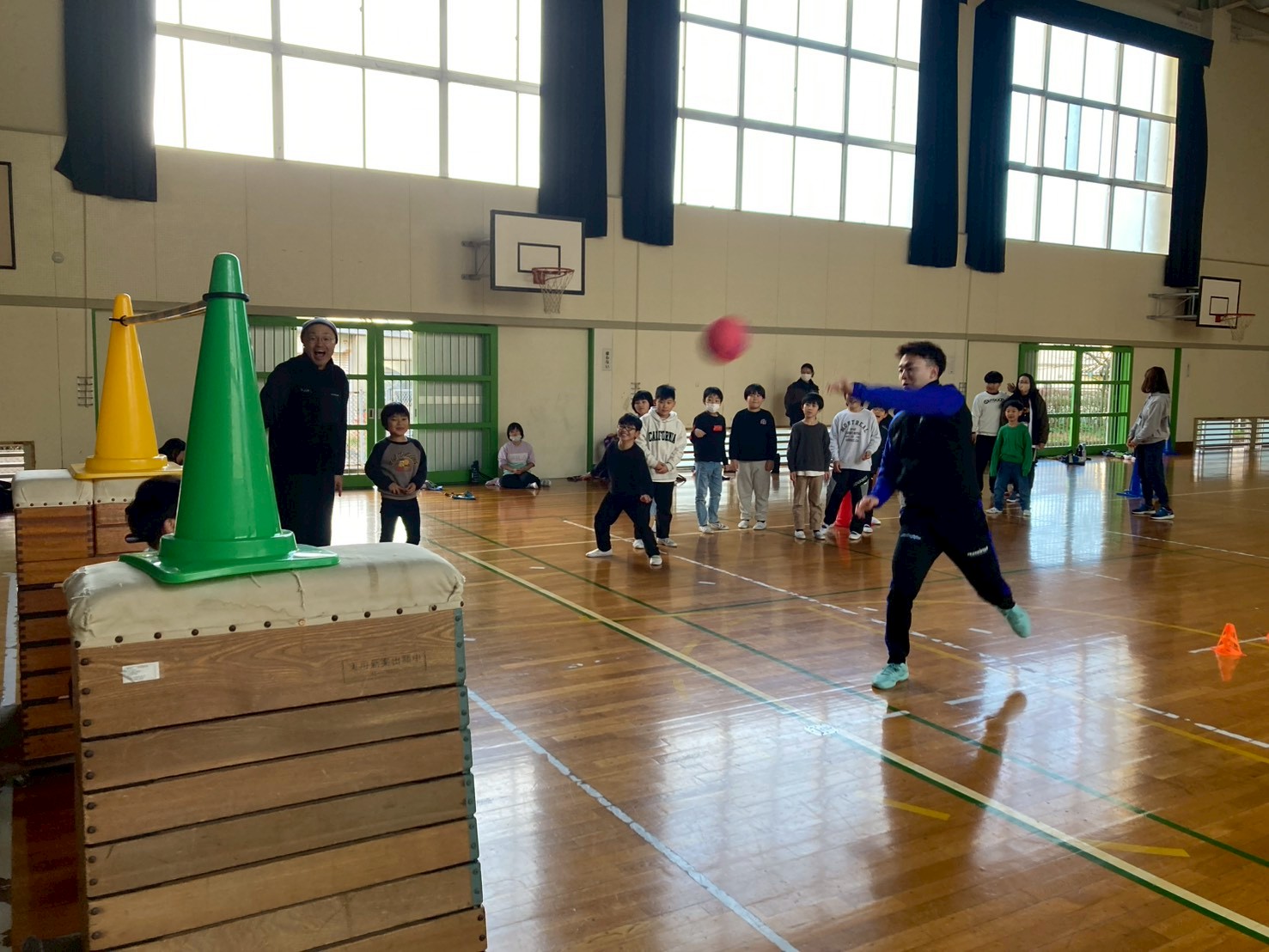 昨年に引き続きの開催となりましたが、今年も「ボール遊び」「ボールの投げ方」「ハンドボールのシュート」「ドッジボール」を行ってくれました。