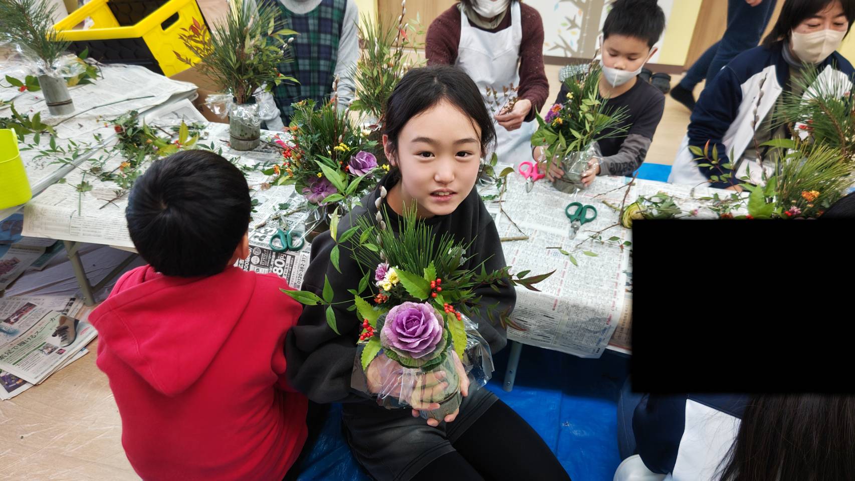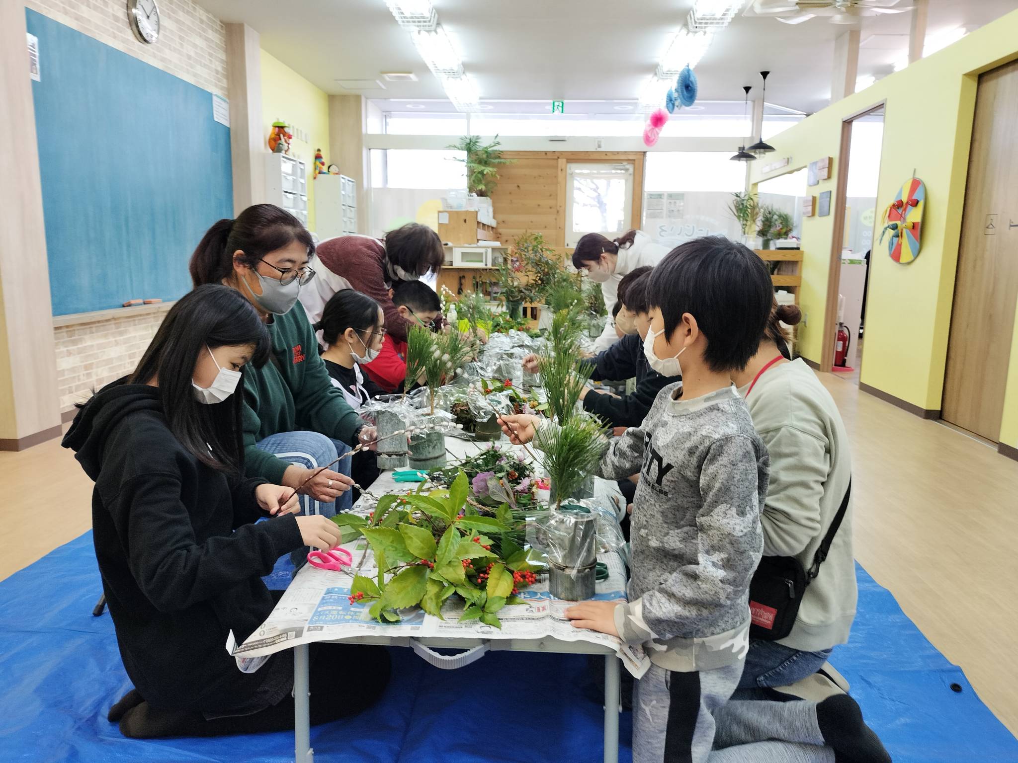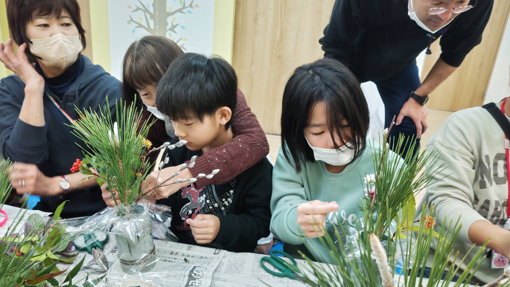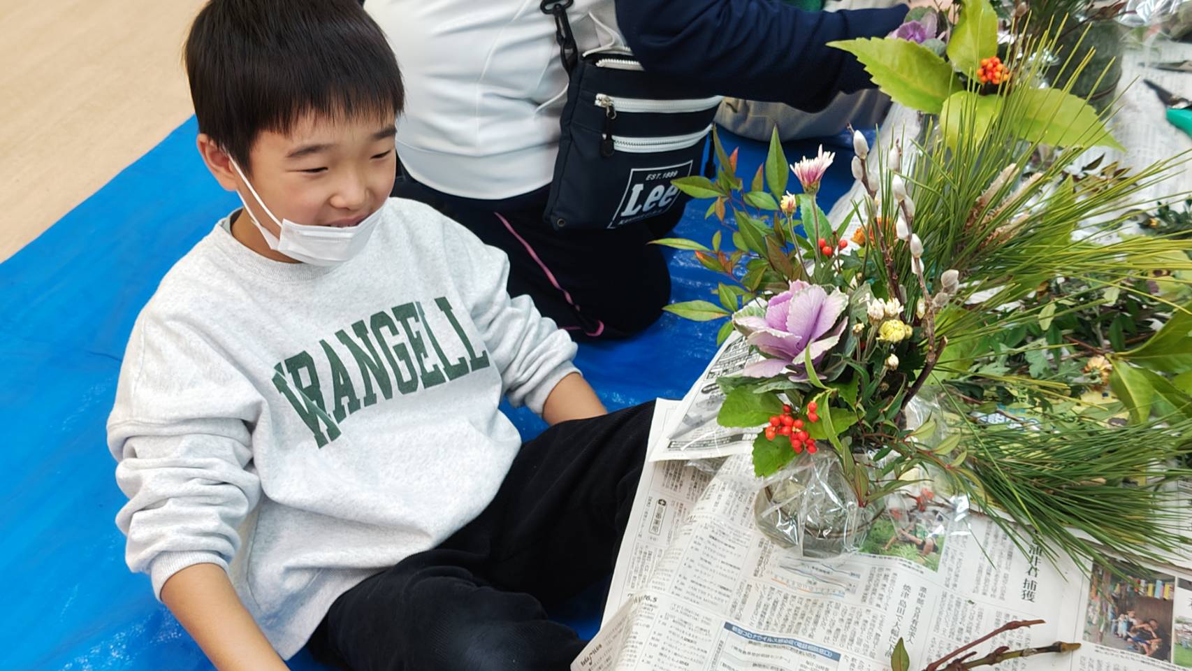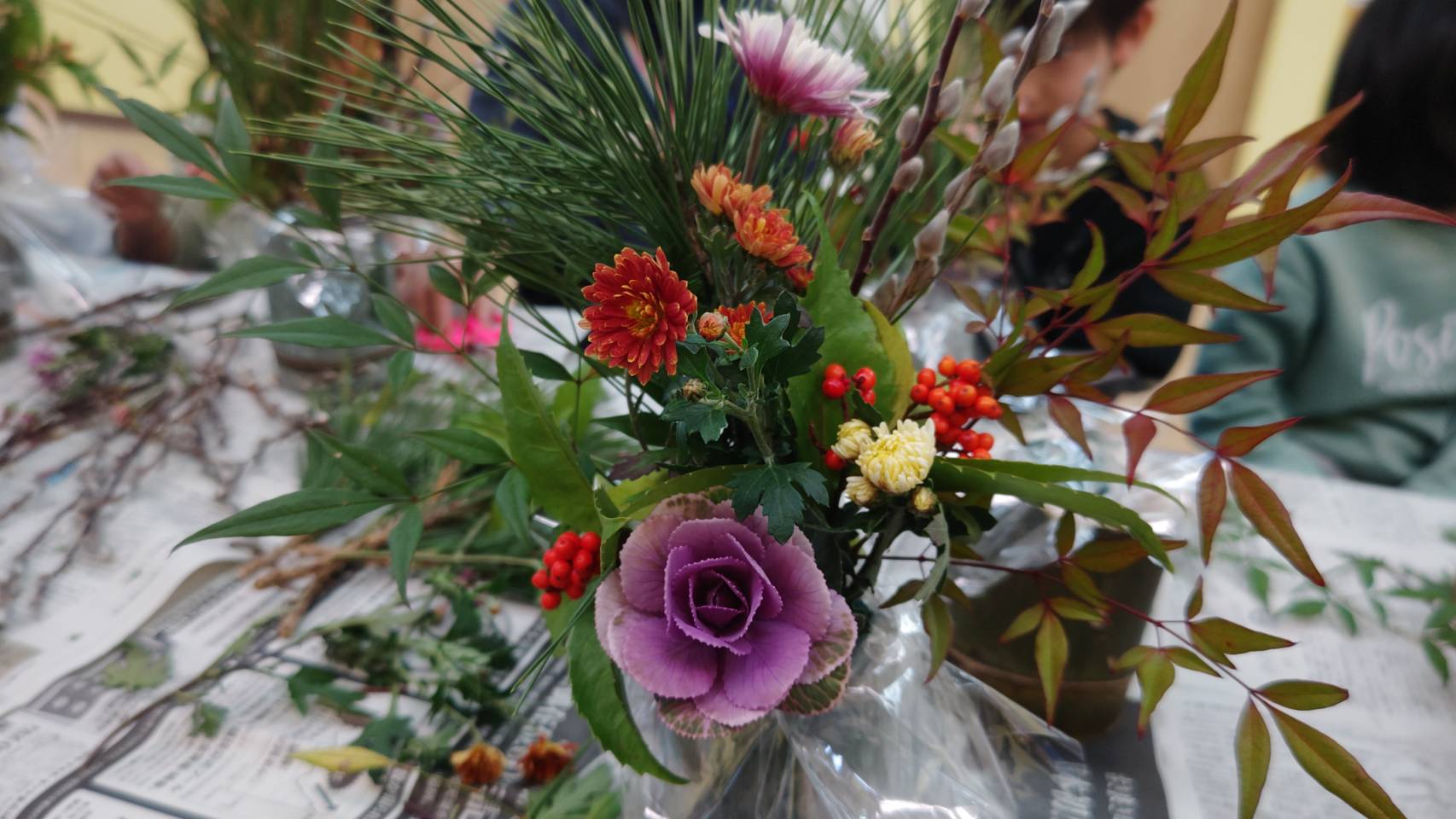 今日は🌈にじいろ の毎年の恒例行事となっている「お正月の花飾り作り🎍」を行いました! 今年も竹の器に生花を生けて、お正月に自宅で飾るステキな花飾りが出来ました✨