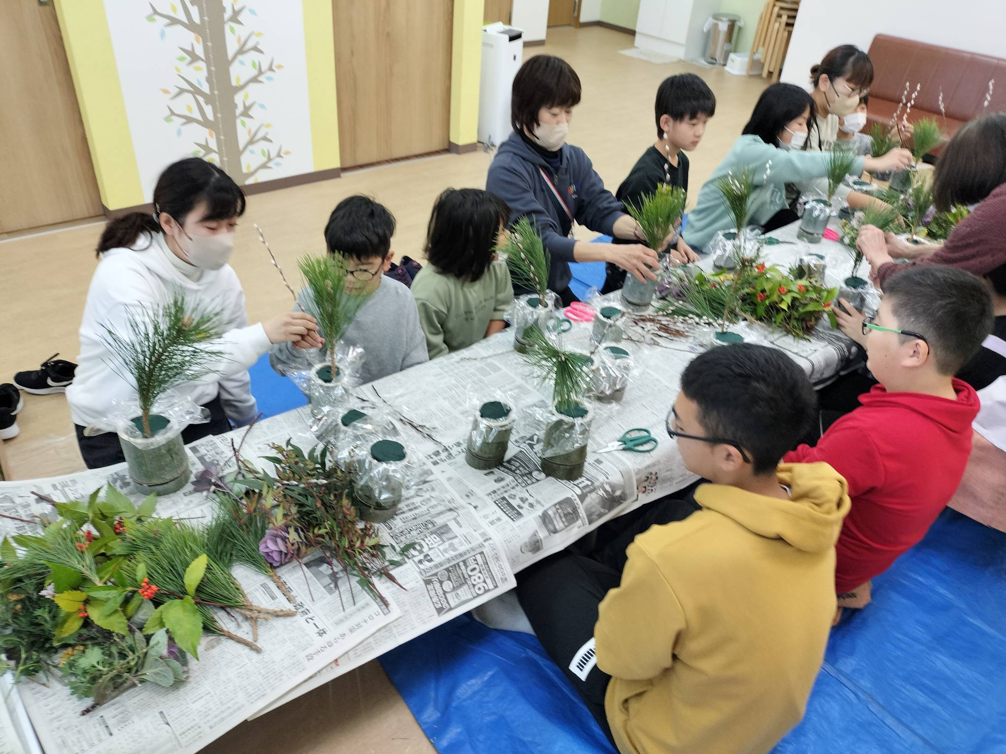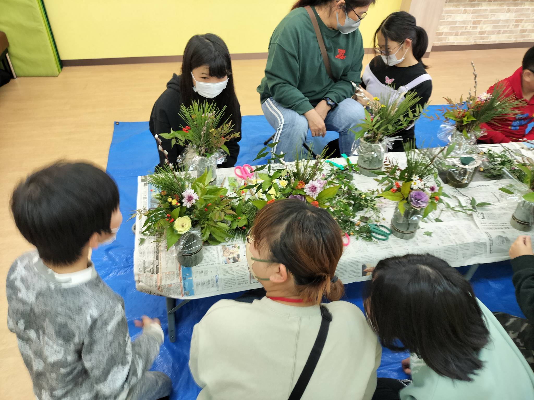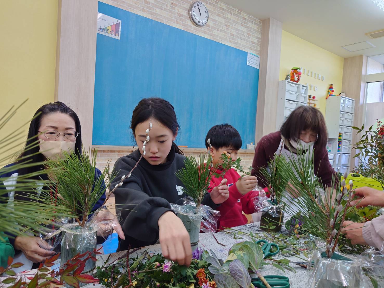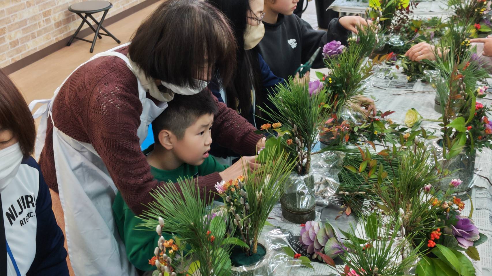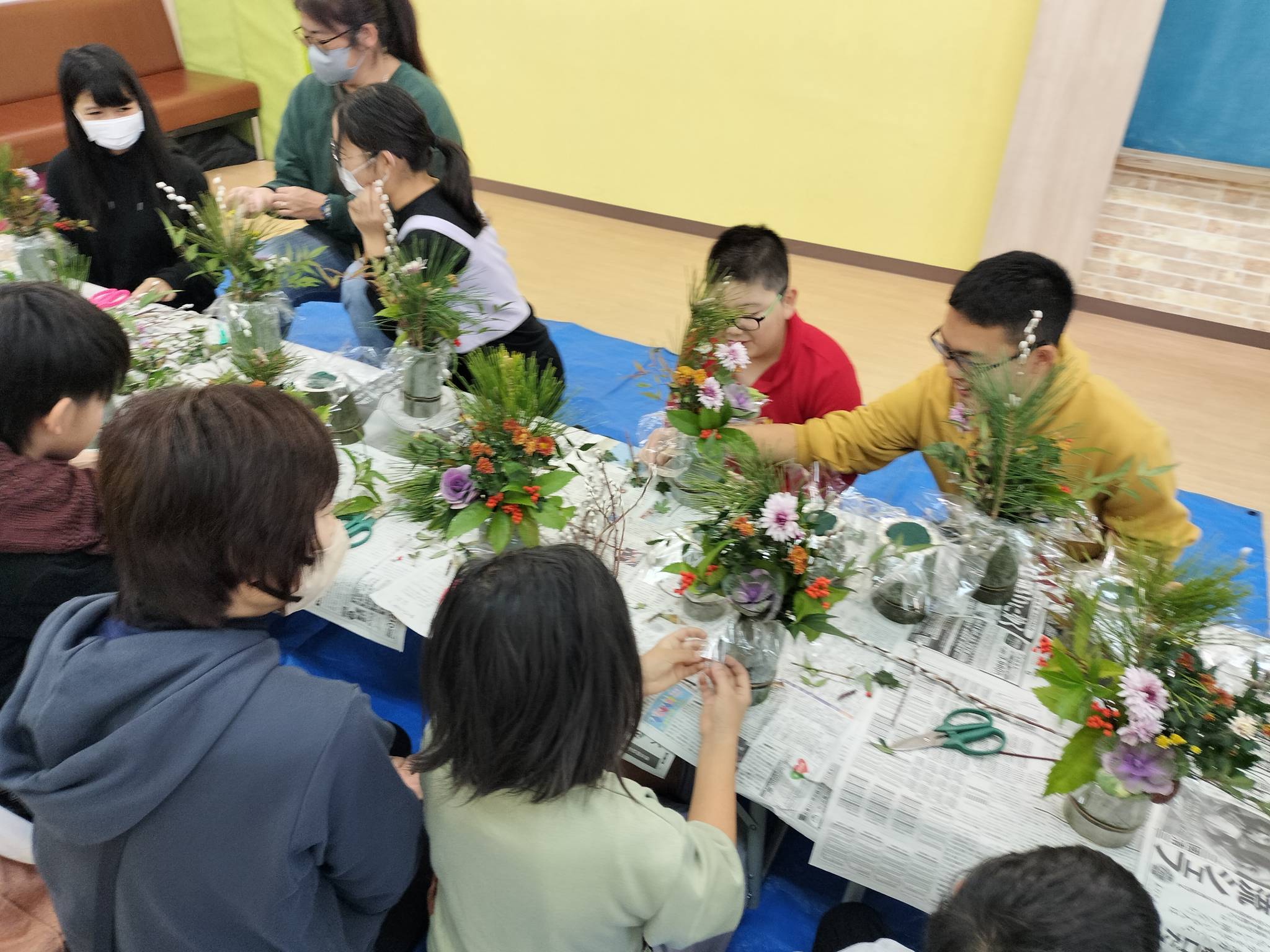 今日は🌈にじいろ の毎年の恒例行事となっている「お正月の花飾り作り🎍」を行いました! 今年も竹の器に生花を生けて、お正月に自宅で飾るステキな花飾りが出来ました✨