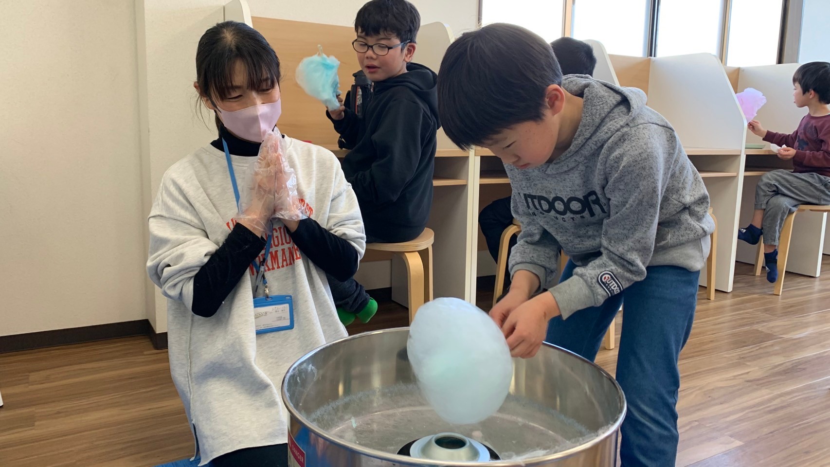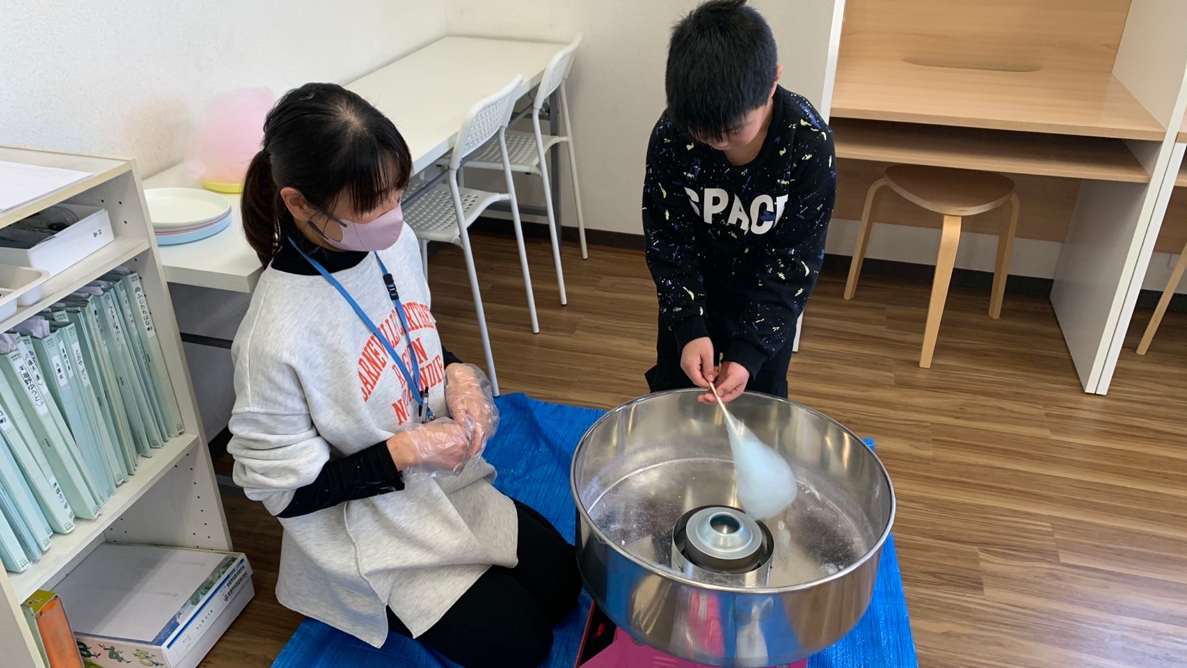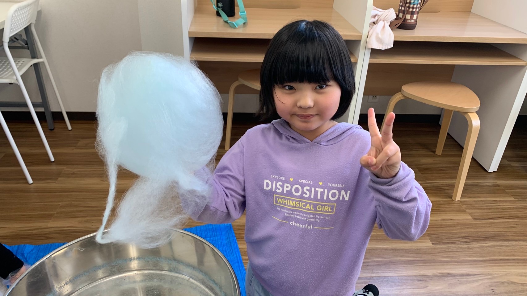 おやつには「わた菓子作り」「ホットケーキ作り」を行い笑顔いっぱいの子供たちでした!