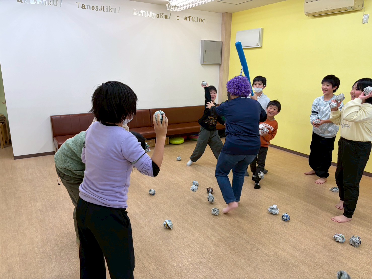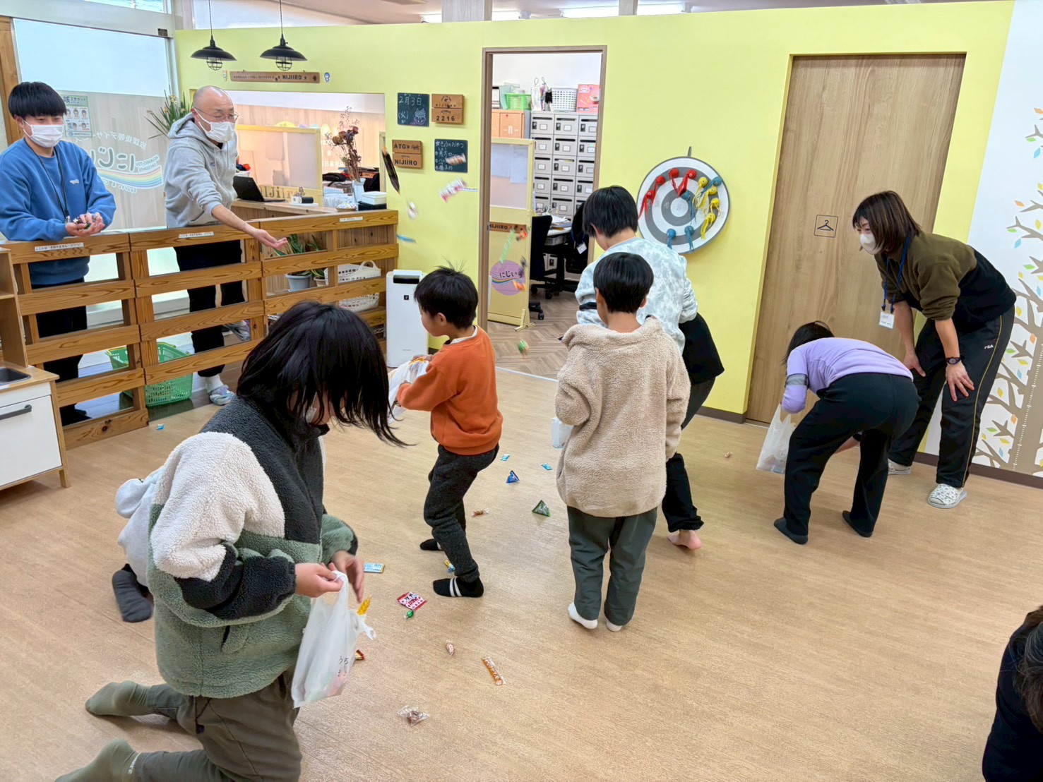 その後はスタッフから節分についての色々なお話を聞いてから「鬼退治」をしてから「お菓子まき」を楽しみました✨