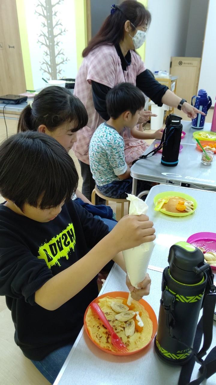 おやつに自分の作ったクレープを食べている時の笑顔😄がとても良かったです✨👏