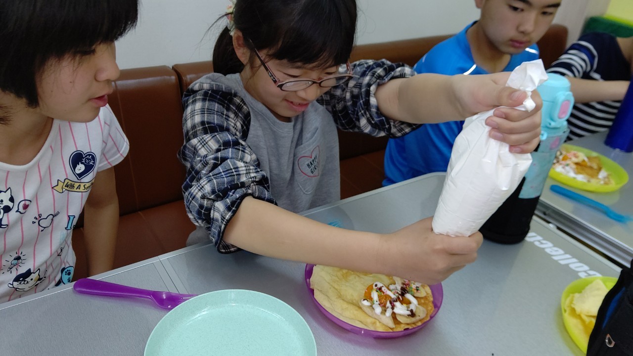 自分で生地も焼き、トッピングも自由に行いました❗😁✌️
