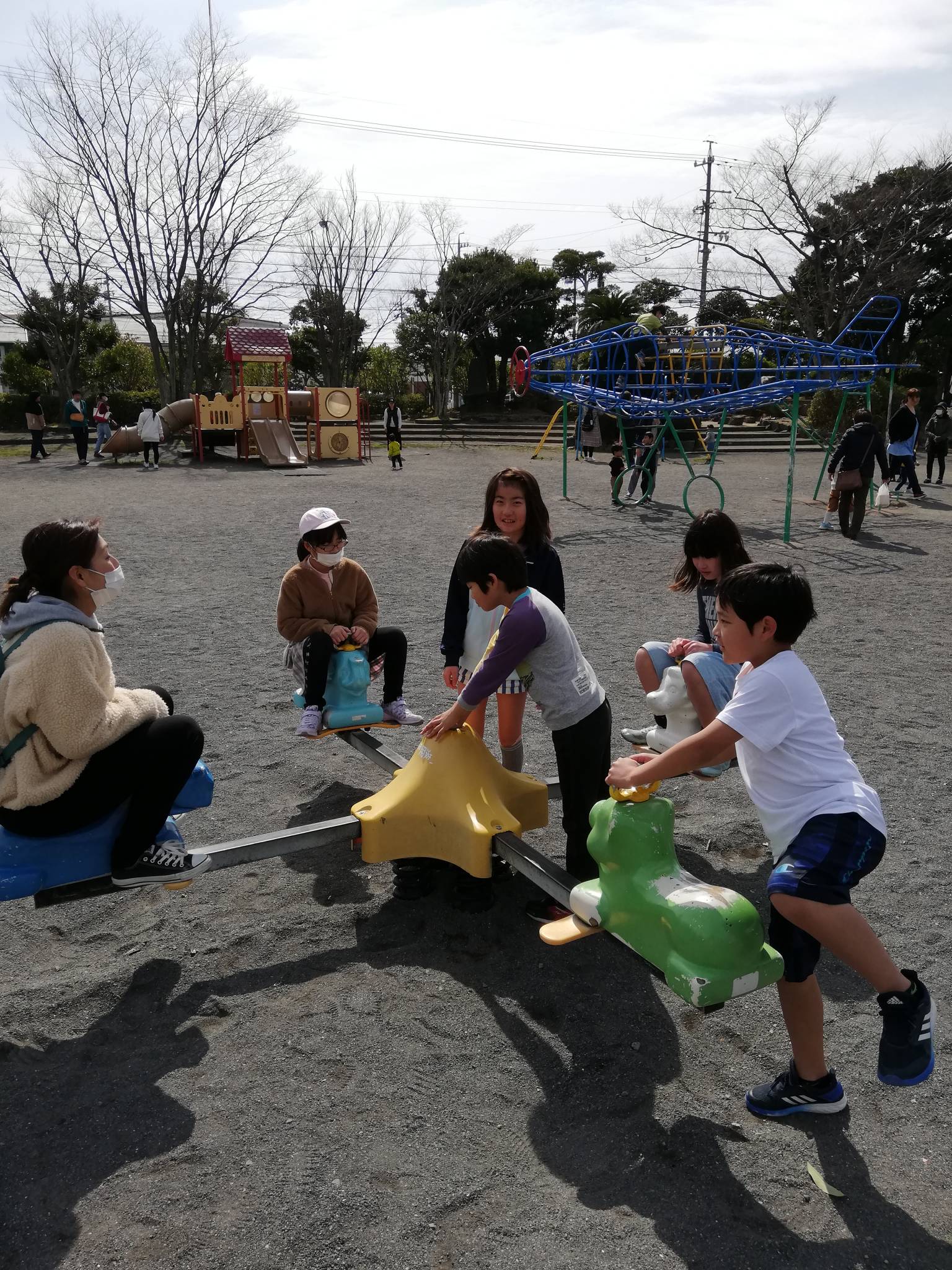 石津西公園ではソリ遊びや焼津らしい船⛵の遊具で体を動かしてから、おやつタイム