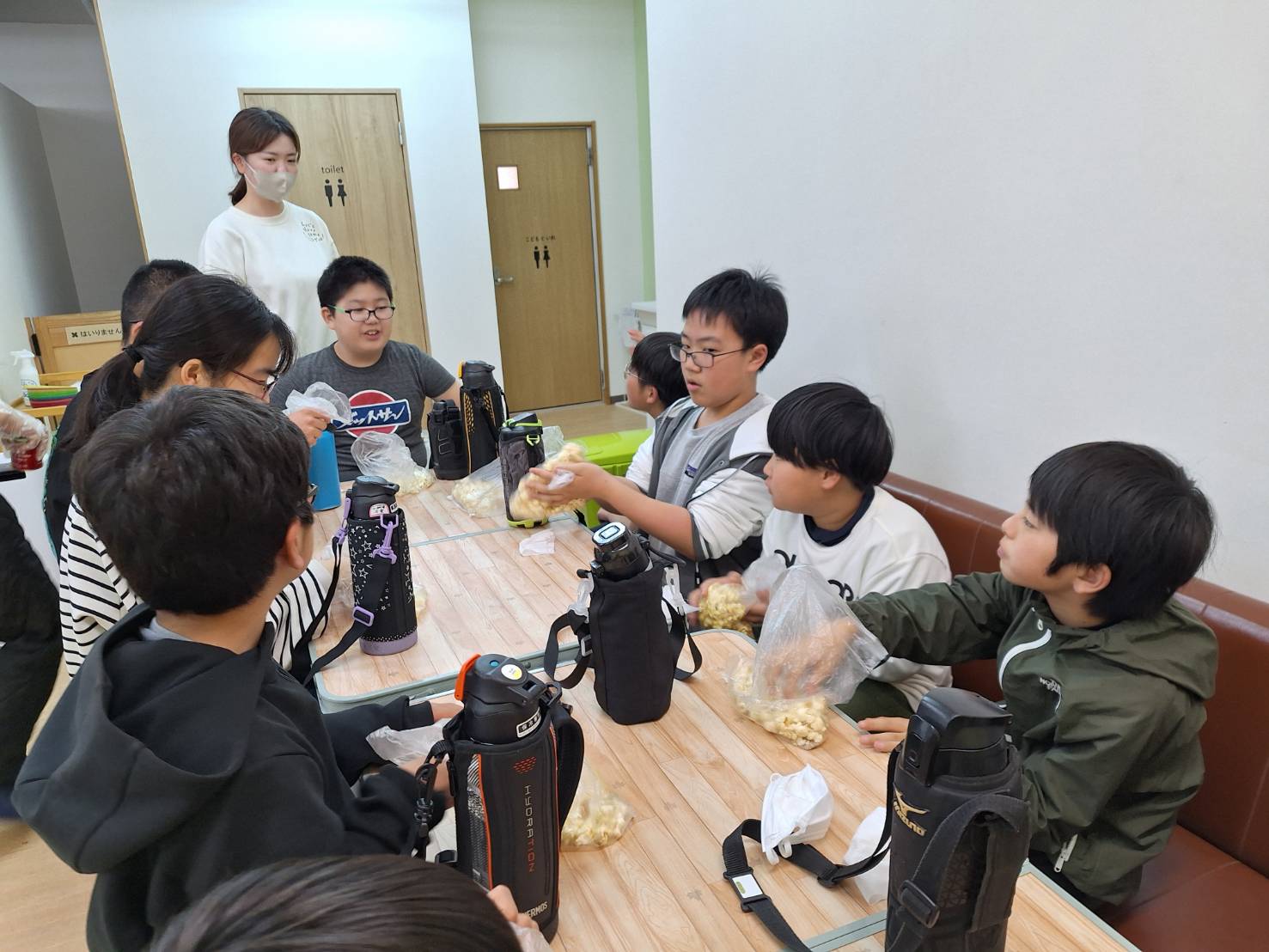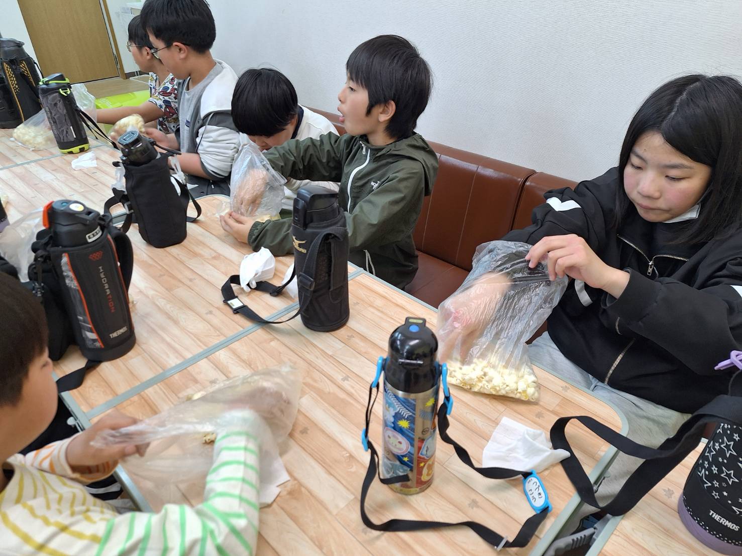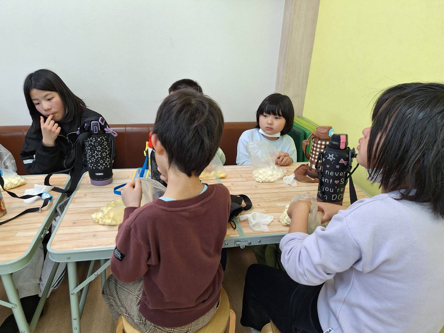 午後は映画鑑賞をしました。今回は宮崎駿の「パンダコパンダ」をスタッフがチョイスしてくれました。50年前に作られた映画ですが、みんな笑いながら楽しんで鑑賞をしました。 おやつは「ポップコーン作り」を行い。カレー味とコンソメ味を楽しみました✨