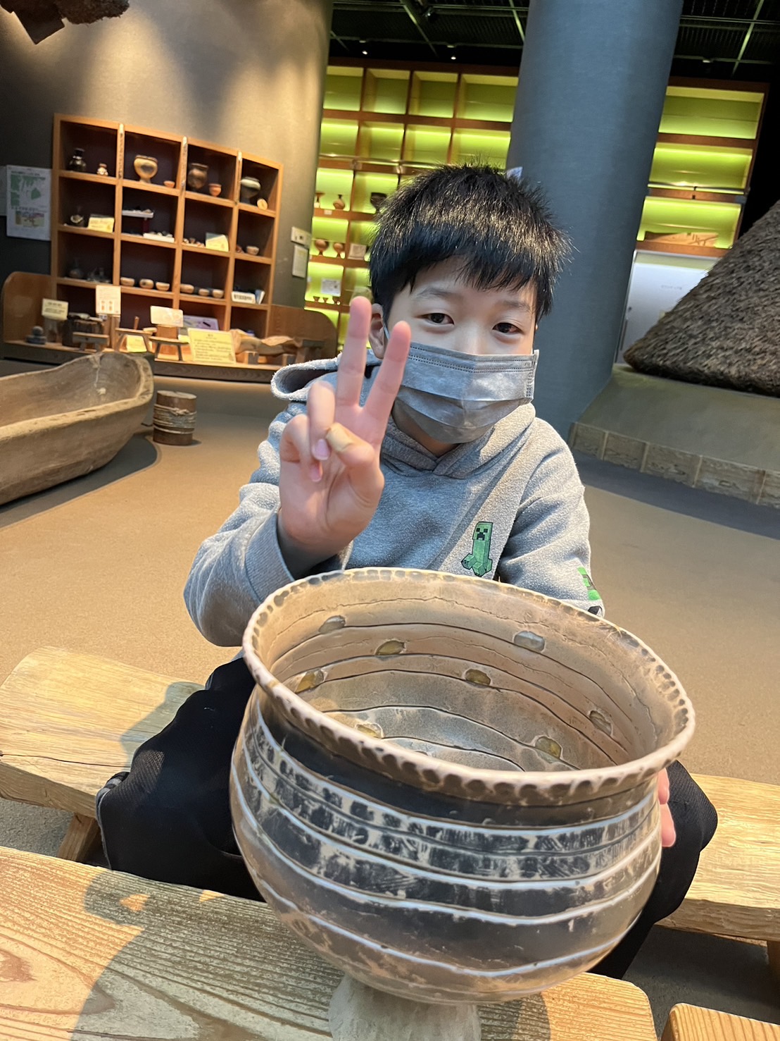 今日もイマイチな天気☁でしたが、歩いて「登呂遺跡」までいってきました!展示室で楽しく遊べました✨
