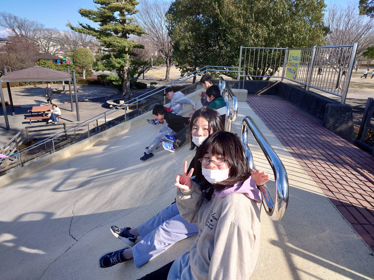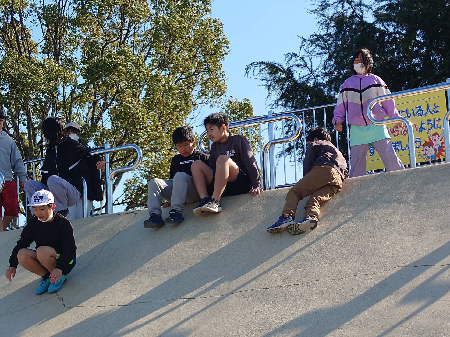 その後、「清見田公園」にも立ち寄り、滑り台などで遊びながら運動してきました!