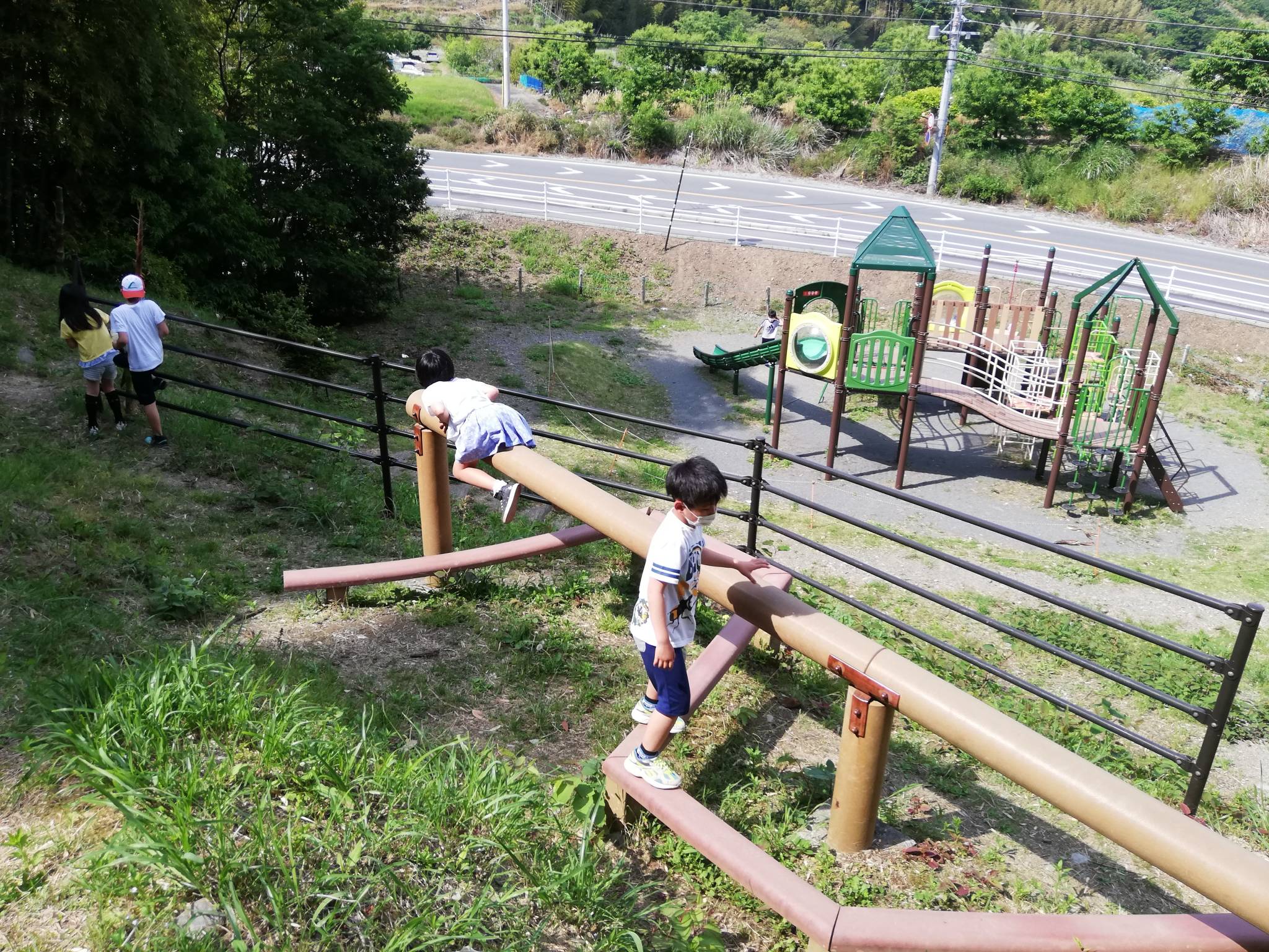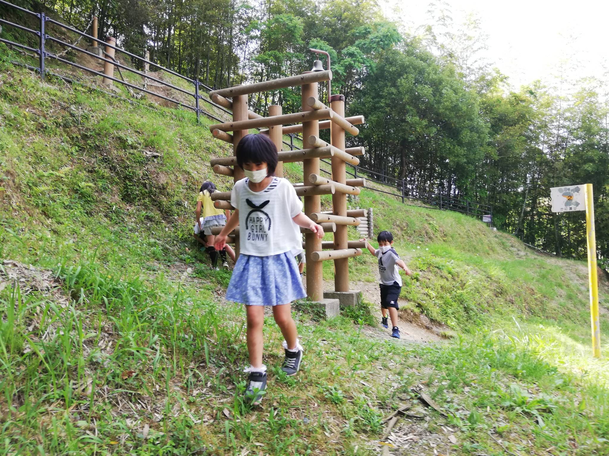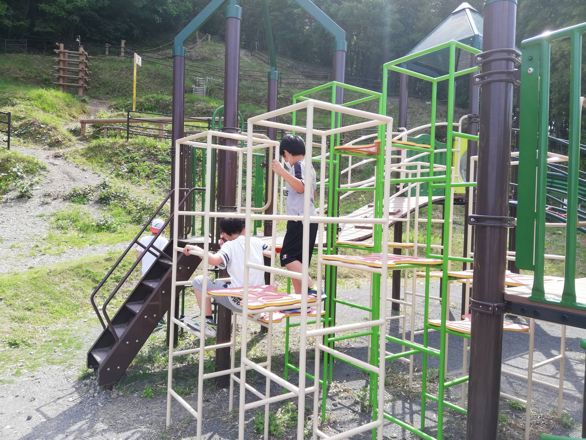 いつもの遊具や滑り台で遊ぶグループと冒険の森へ探検をするグループに別れて活動しました👊😆🎵