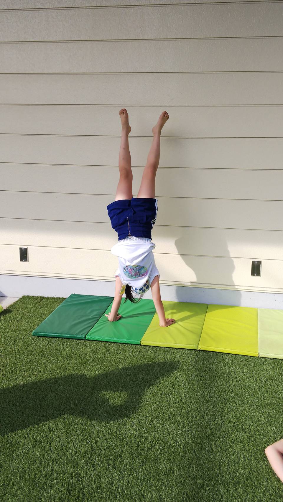 芝生エリアにある壁に向かって練習をしているのですが、最近は上達して自力で逆立ちを行える子供達も出てきました😁✌️