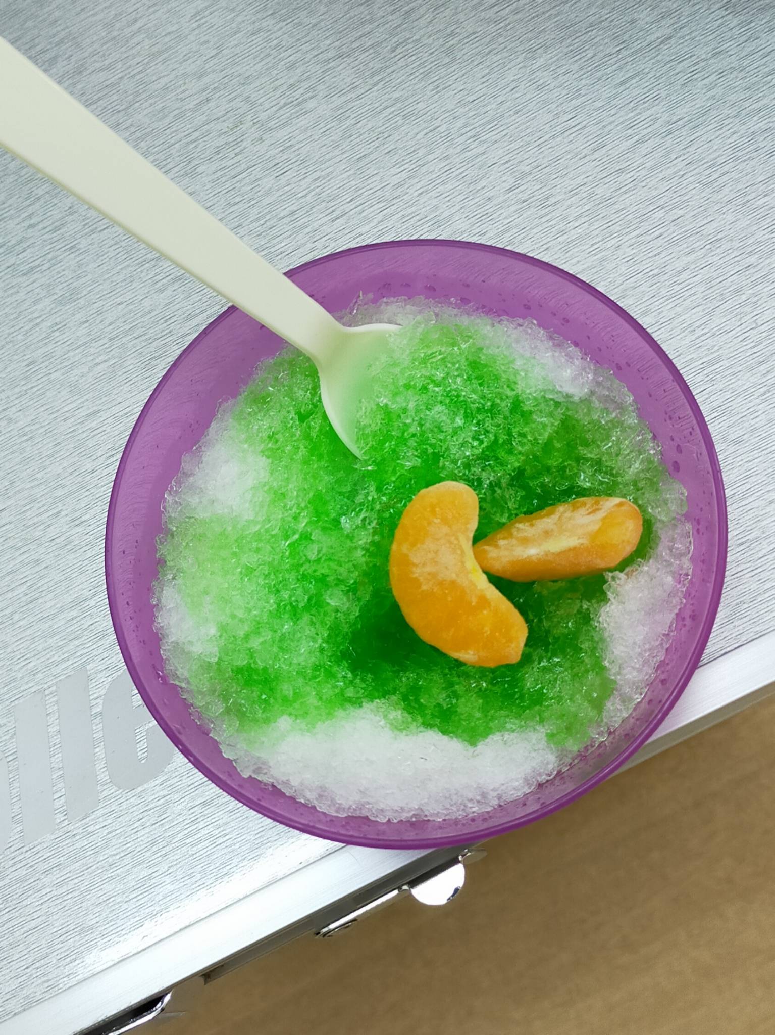 今日は冷凍みかん🍊をトッピングして、さらにヒンヤリとしたかき氷🍧となりました❄️