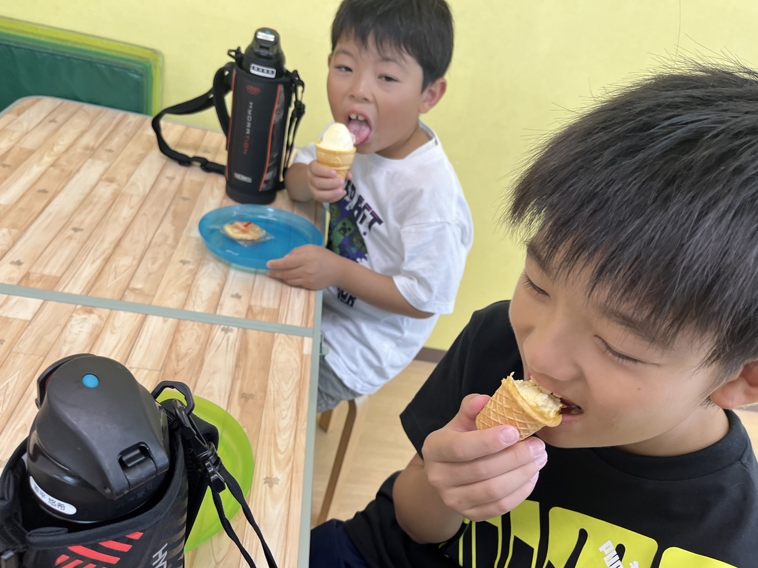 今日も午前中は体育館、午後はプール、おやつはアイスクリーム🍦でした!
