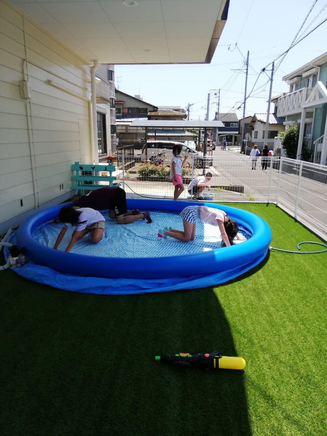 みんなで水遊び用の玩具や椅子、水鉄砲🔫も準備して8/3のプール開きの準備ができました!