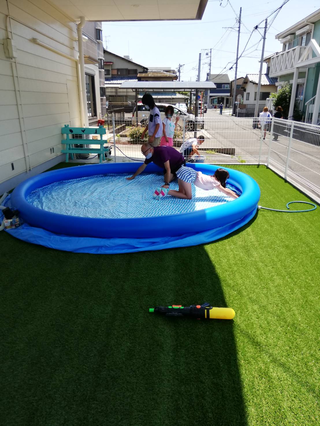 みんなで水遊び用の玩具や椅子、水鉄砲🔫も準備して8/3のプール開きの準備ができました!
