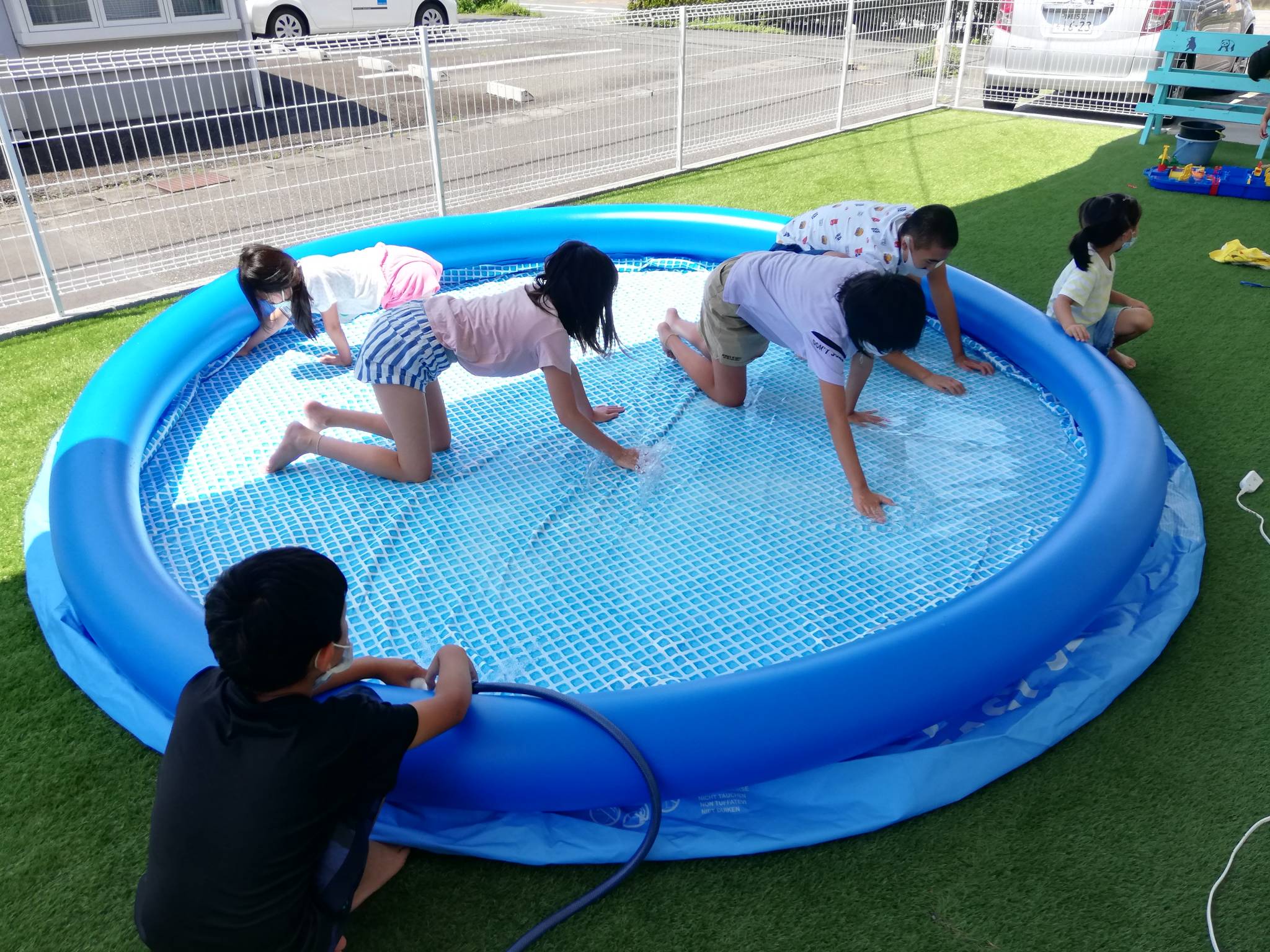 午後には半分弱の水が貯まった状態で水遊びも楽しく行いました✨