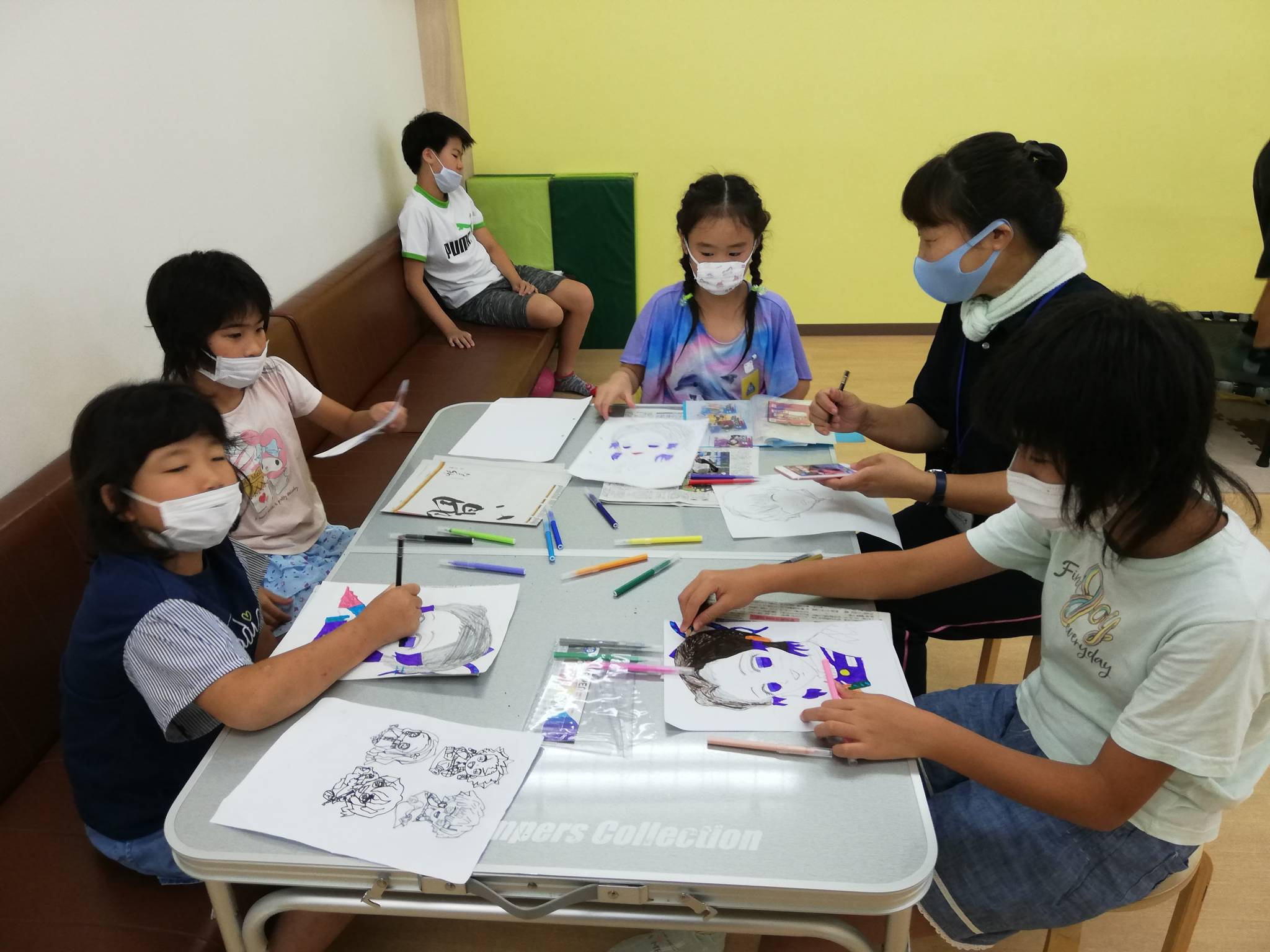 今日もプールの様子と室内で女子が熱中していた「鬼滅の刃」の塗り絵の様子をUPします!