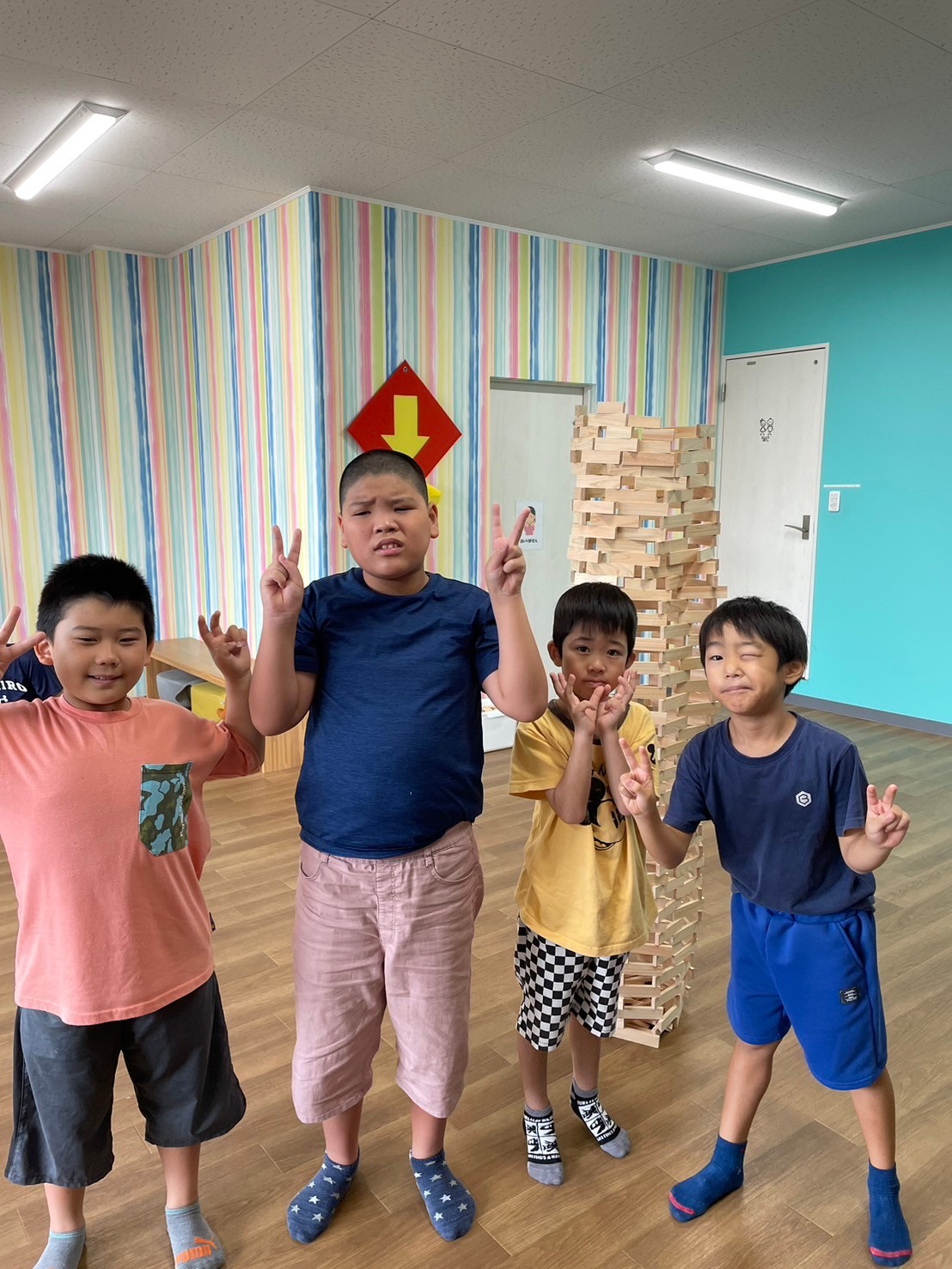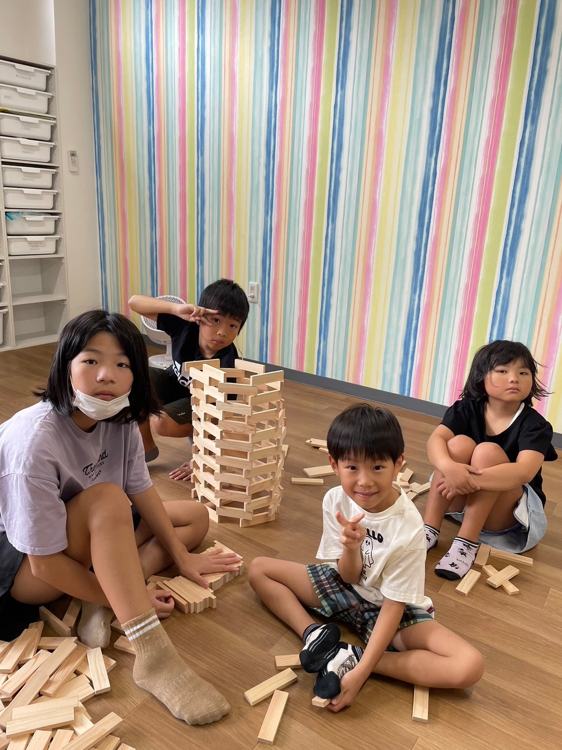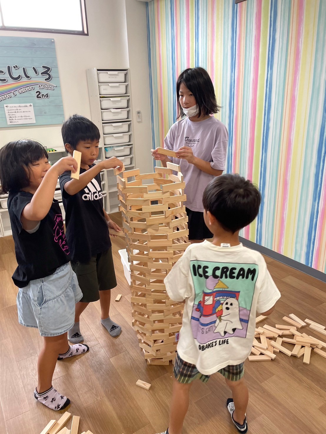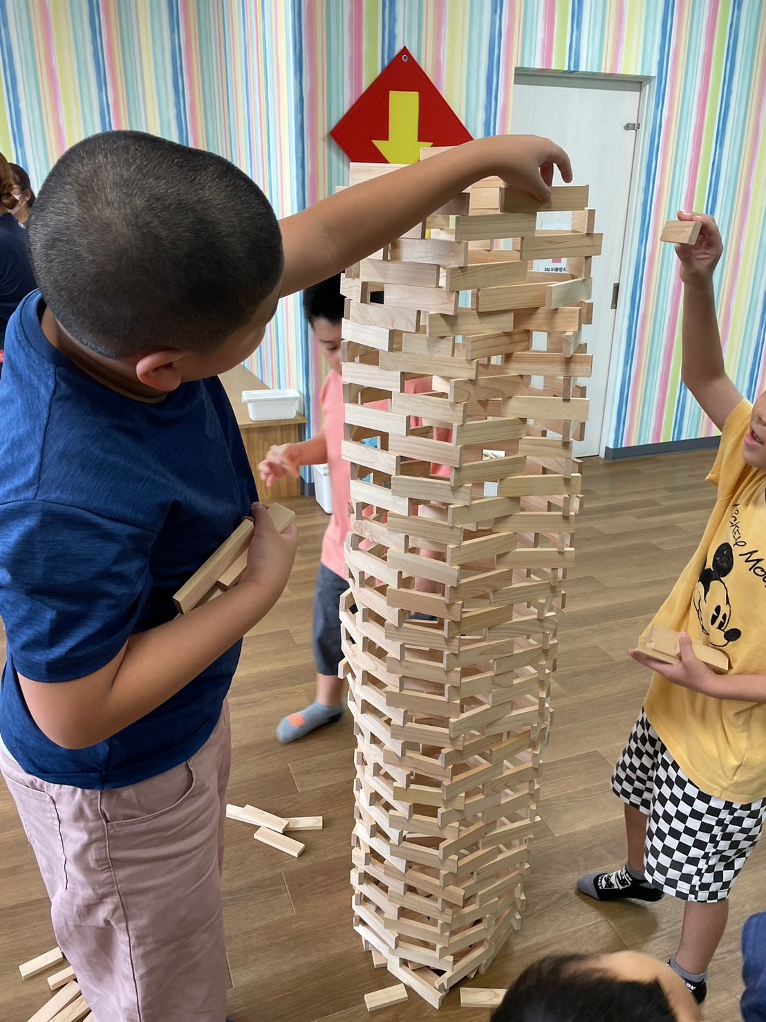 2ndに集まり、みんなでグループに分かれて「積み木タワー」を作りました😁✌️
