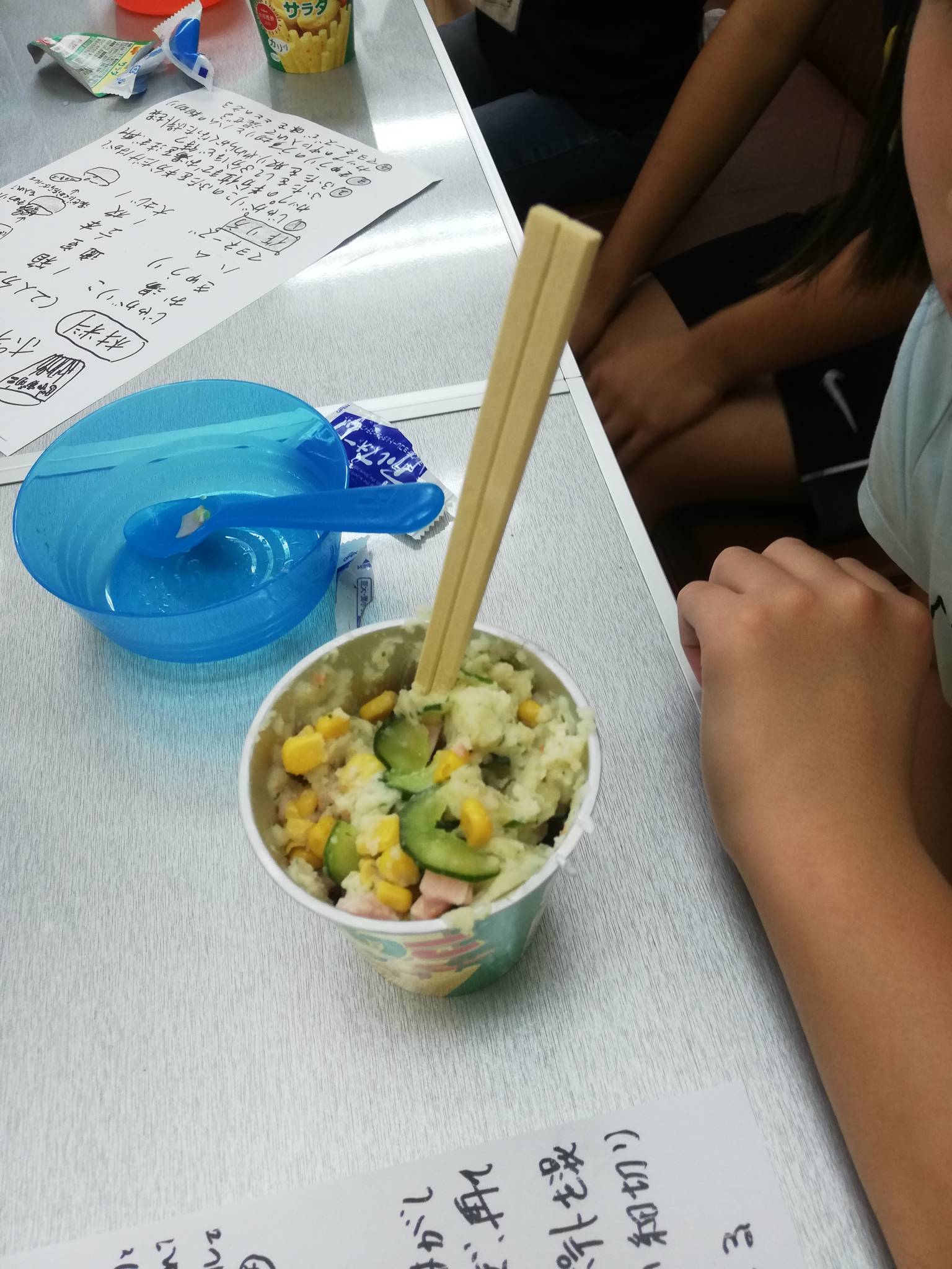 おやつには防災にちなんで「じゃがりこ」を使ったポテトサラダも作り、美味しくいただきました!!