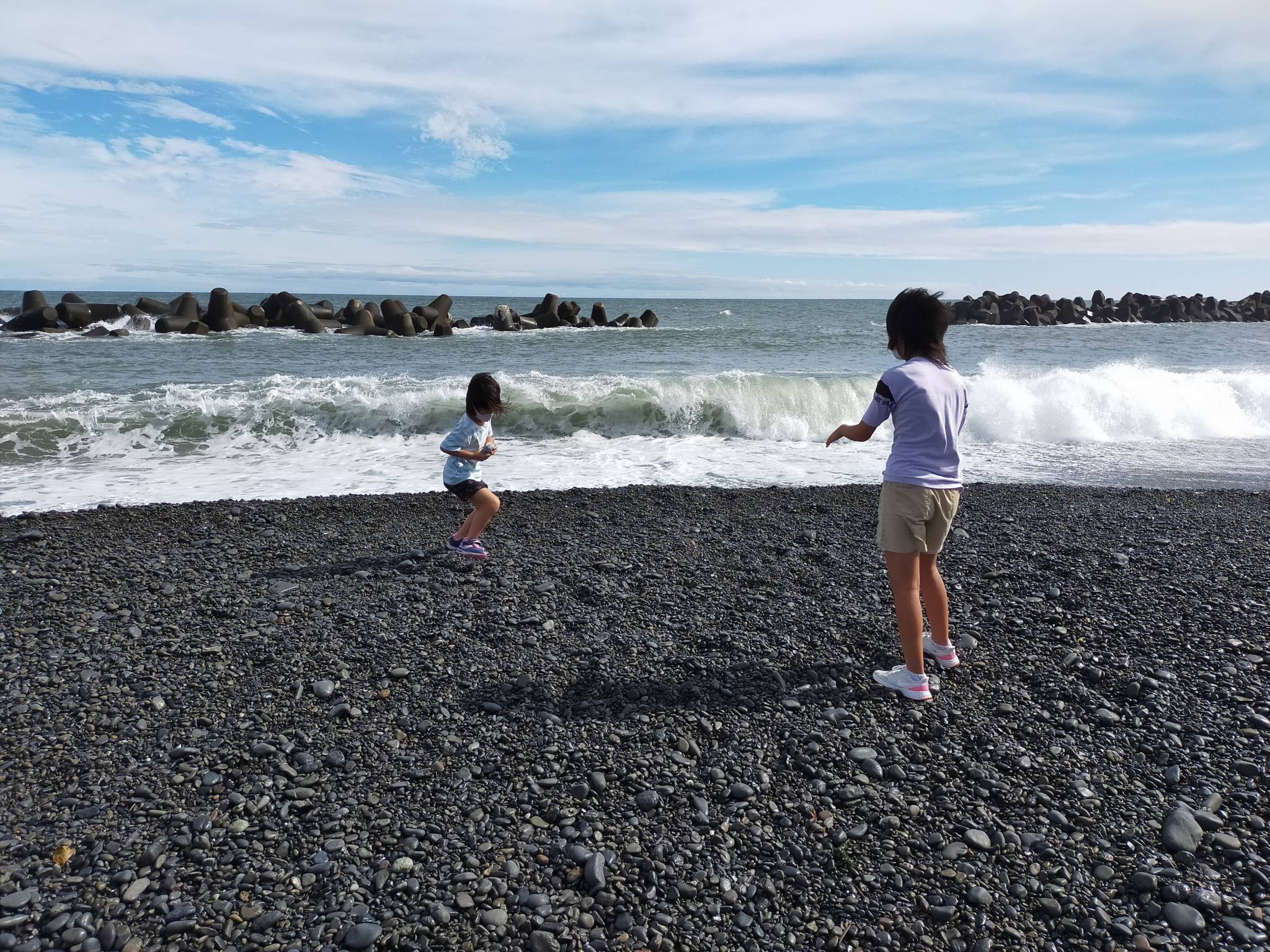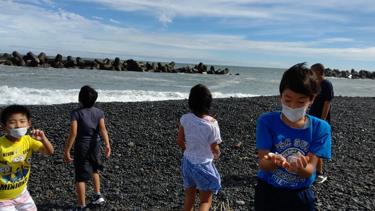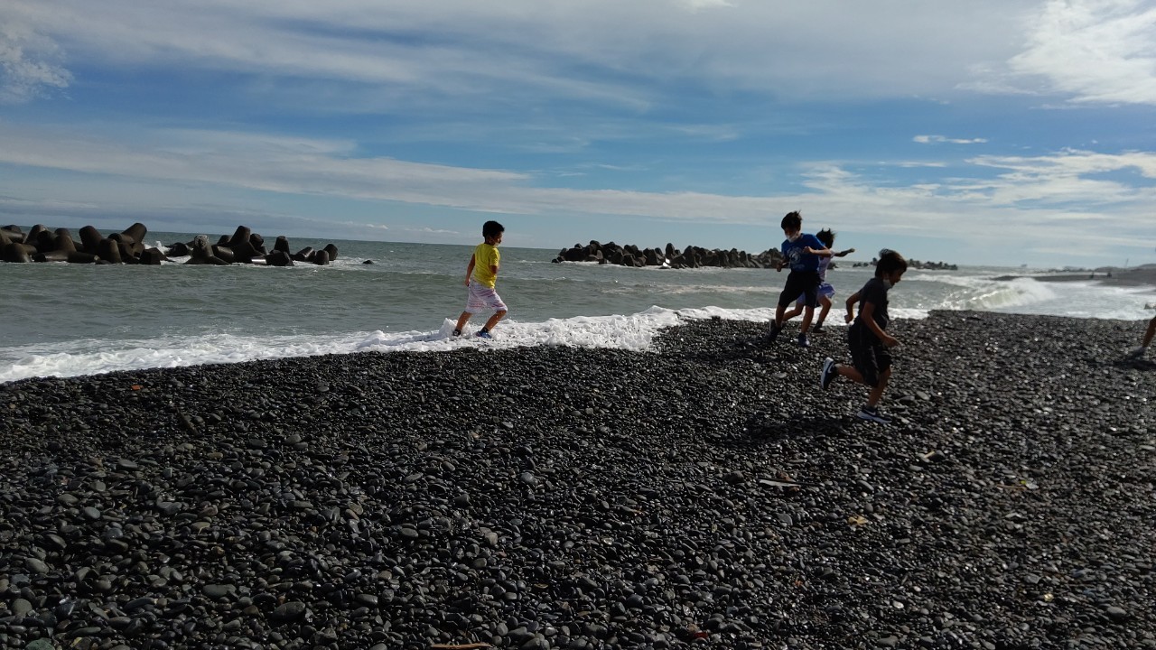 波打ち際で石を投げたり、波🌊と競走しました! みんな海🌊が大好き♥