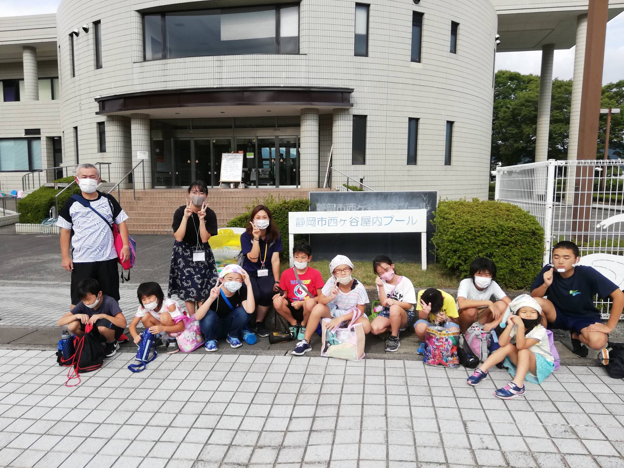 残念ながらプールでの写真撮影が❎なので、子供達の泳ぎをお見せできませんが、プール🏊に入る前の様子と終わったあとの集合写真をアップします😁✌️