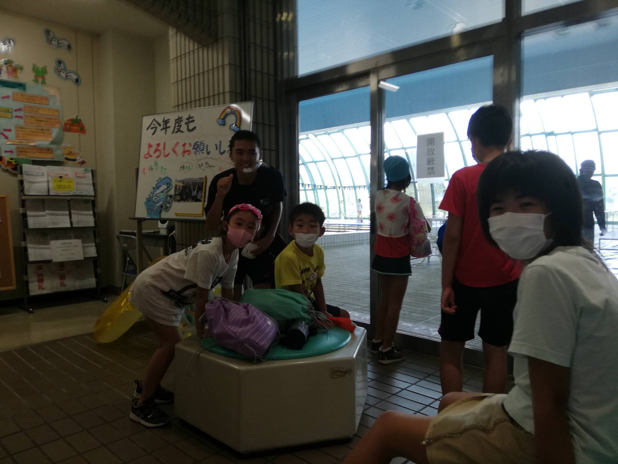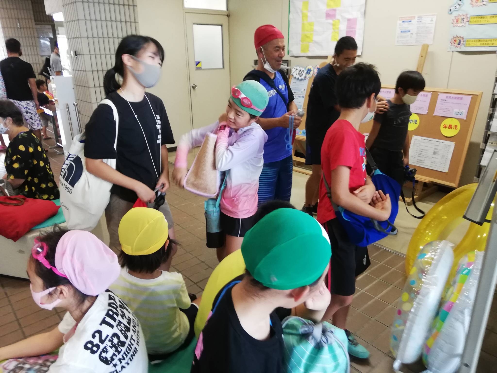 残念ながらプールでの写真撮影が❎なので、子供達の泳ぎをお見せできませんが、プール🏊に入る前の様子と終わったあとの集合写真をアップします😁✌️